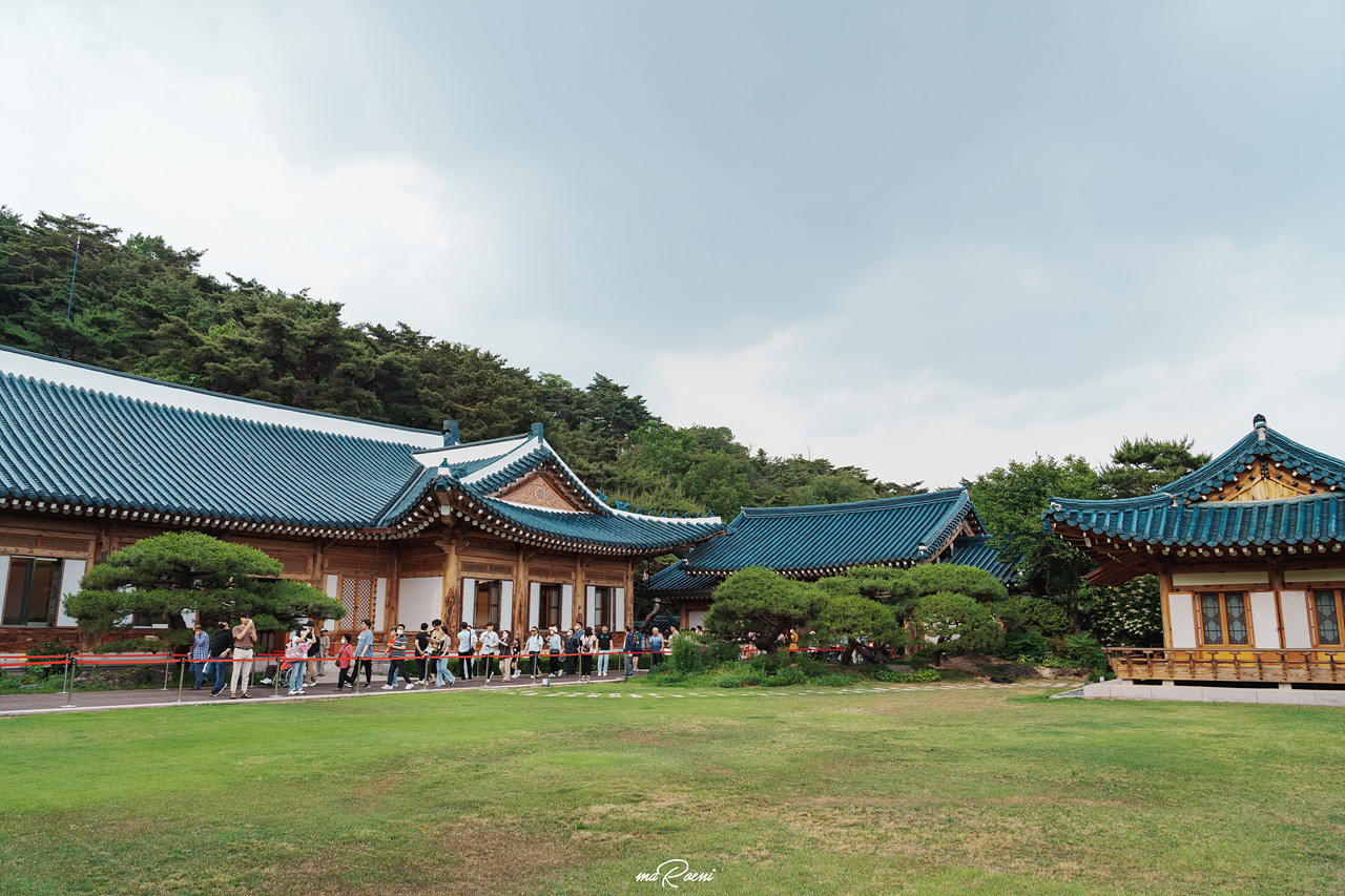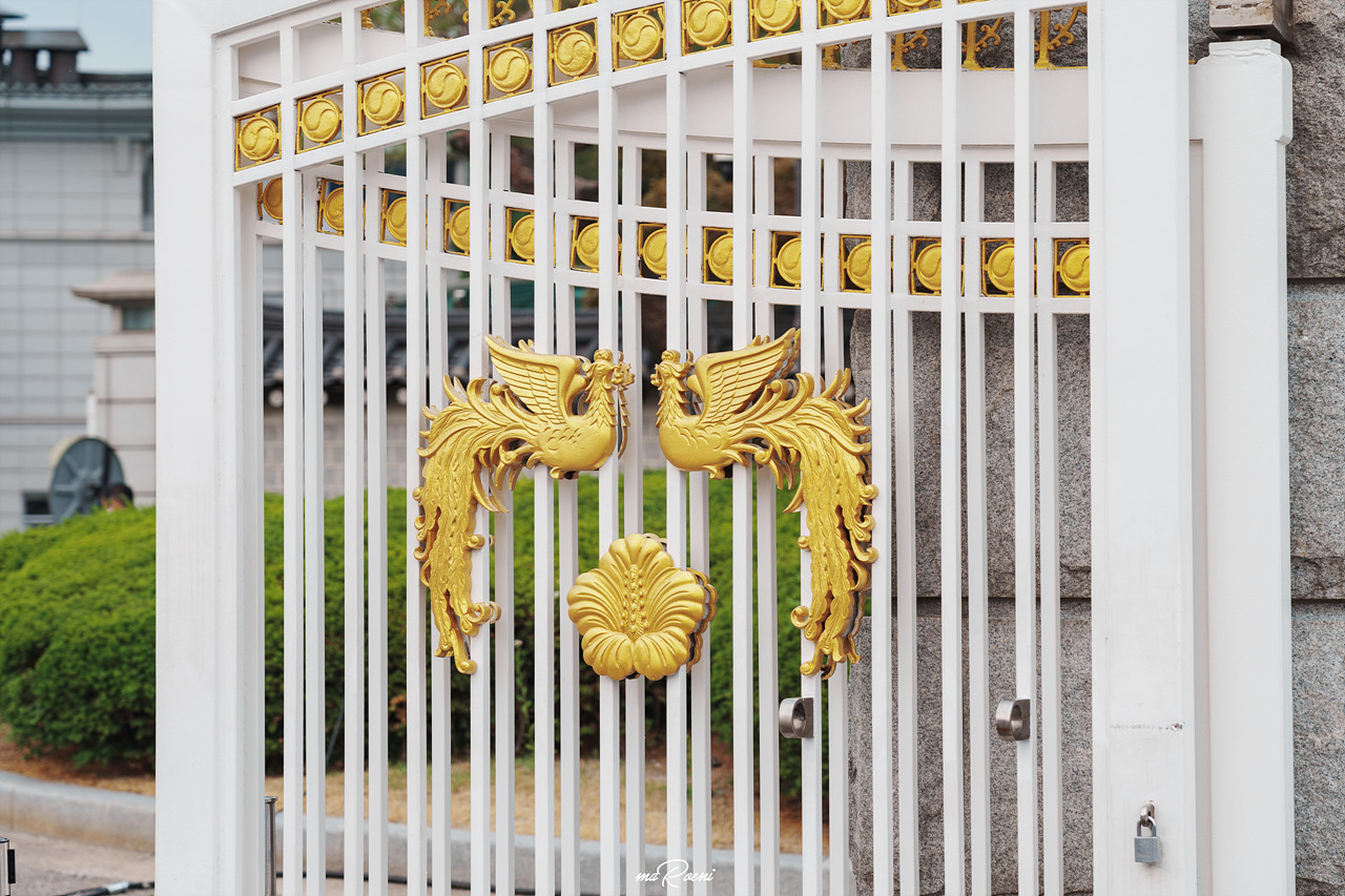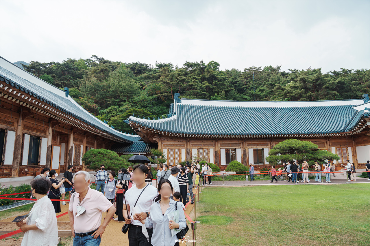 5~10분정도 기다린 끝에 드디어 관저 입성에 성공..;; 대통령과 가족의 거주공간인 관저. 우리나라 전통 양식인 뜰과 사랑채로 구성되어 있으며, 생활공간인 본채와 접견 행사 공간인 별채 등등이 있다. 그런데 우리가 눈으로 확인할 수 있는건, 외부뿐.. 안타깝게도 실내는 구경할 수가 없더라. 키가 크다면 가능할지도..?