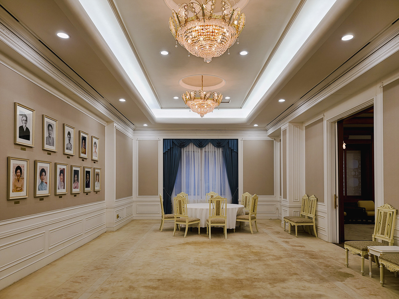 역대 영부인들의 사진들이 걸려있는 청와대 영부인 접견실. 대통령이 일을 보는 집무실보다는 더 고풍스러운 느낌이다. 요즘엔 이런 분위기의 카페들이 많아서 특별하게 느껴지지는 않았다.