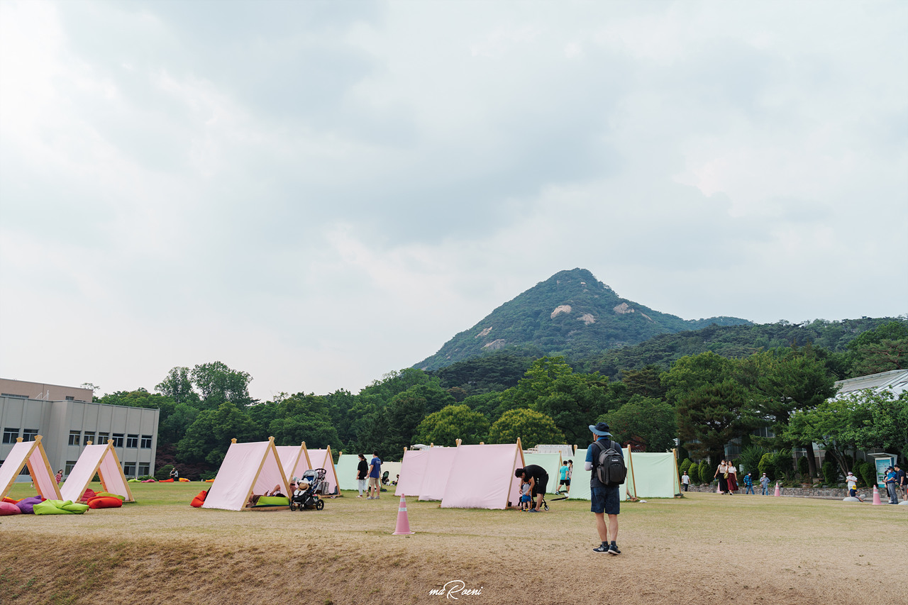 춘추관을 빠져나가면 눈앞에 커다란 잔디밭이 펼쳐지는데, 이곳이 청와대의 헬기장이라고 한다. 현재는 관람객들의 편의를 위해 텐트와 그늘막, 빈백이 설치되었으며 따로 예약을 하지 않아도 누구나 자유롭게 이용할 수 있다고 하더라. 근데 우리는 조금 늦게 도착하기도 했고, 이곳저곳 구경하기에도 시간이 빠듯한 것 같아서 스킵했다.