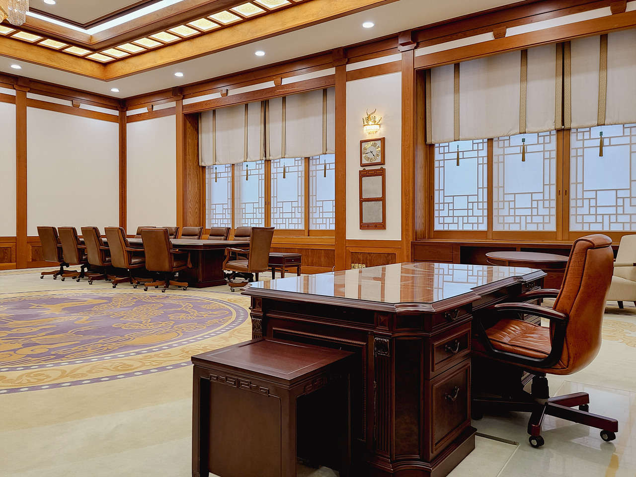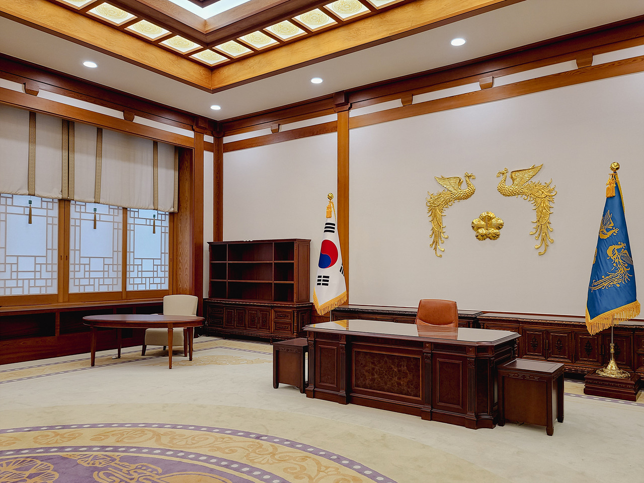 코리안 오우너의 자리인 집무실 되시겠다. TV나 잡지에서 봤을 땐 엄청 크고 웅장할 것이라고 생각했는데, 실제로 보니 생각보다 소박한 분위기라고 해야 하나? 가구도 화려하지 않고 딱 절제된 그런 맛이 있다.. 근데 소문으로는 청와대 가구들이 보이는 것과 다르게 엄청 고가의 제품이라고 하더라.
