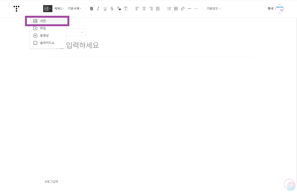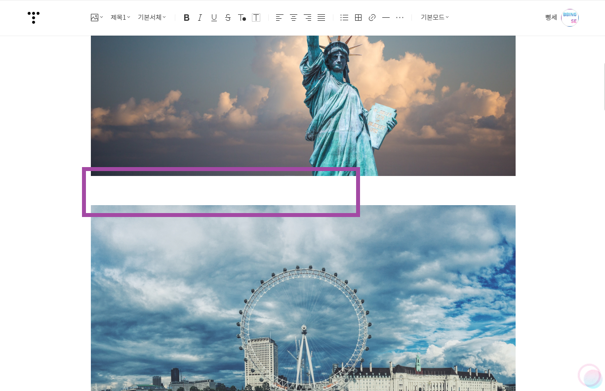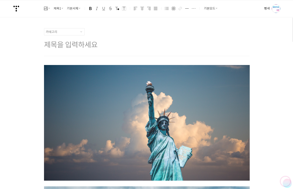 1) 티스토리 신규에디터에서 기존에 글 작성 방식 그대로 사진을 업로드해주세요.