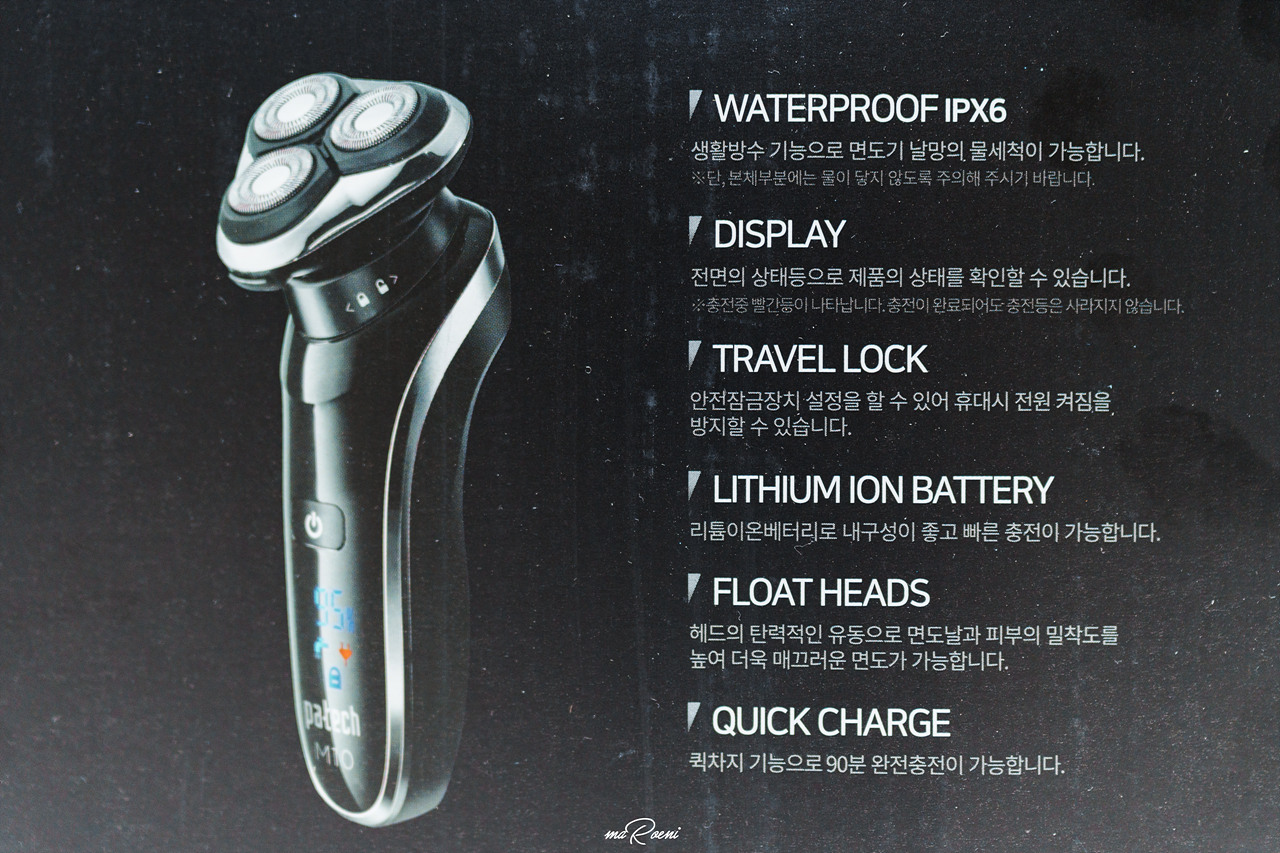 그동안 전기면도기는 무조건 필립스가 짱인줄 알았는데, M10에 필립스 로고 박아도 모를 정도로 제품의 완성도가 매우 높았다. 무엇보다도 가격에 비해 그렇게 싼티가 나지 않아서 남자친구나 남편, 아빠에게 선물용으로 주기에 괜찮아 보인다. 현재 필자는 만족하면서 사용중인데, 나중에라도 절삭력이 살짝이라도 떨어졌다 싶으면 보풀제거용으로 돌려볼 예정이다.