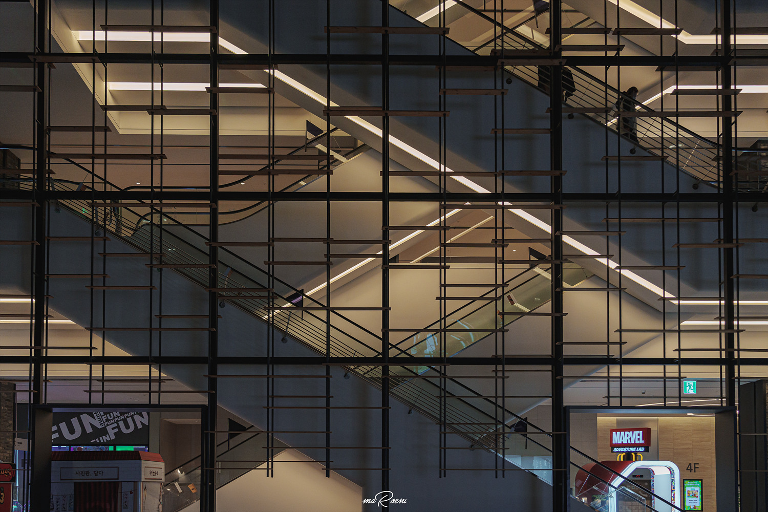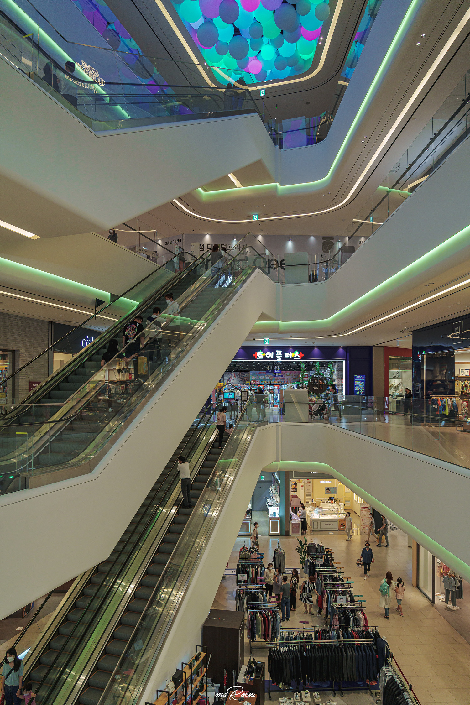 부천가볼만한곳중 하나인 부천 스타필드시티의 분위기는 전체적으로 이러하다. 뭐랄까 에스컬레이터가 정돈된 느낌이 아니라, 백화점 한가운데에 말뚝처럼 박혀있어서 좀 갑갑한 느낌이라고 해야 하나? 아무튼, 개인적으로 필자는 이렇게 중구난방한 곡선 건축양식을 선호하지 않는다. 사진찍기도 힘들고 정돈하기도 힘듦.