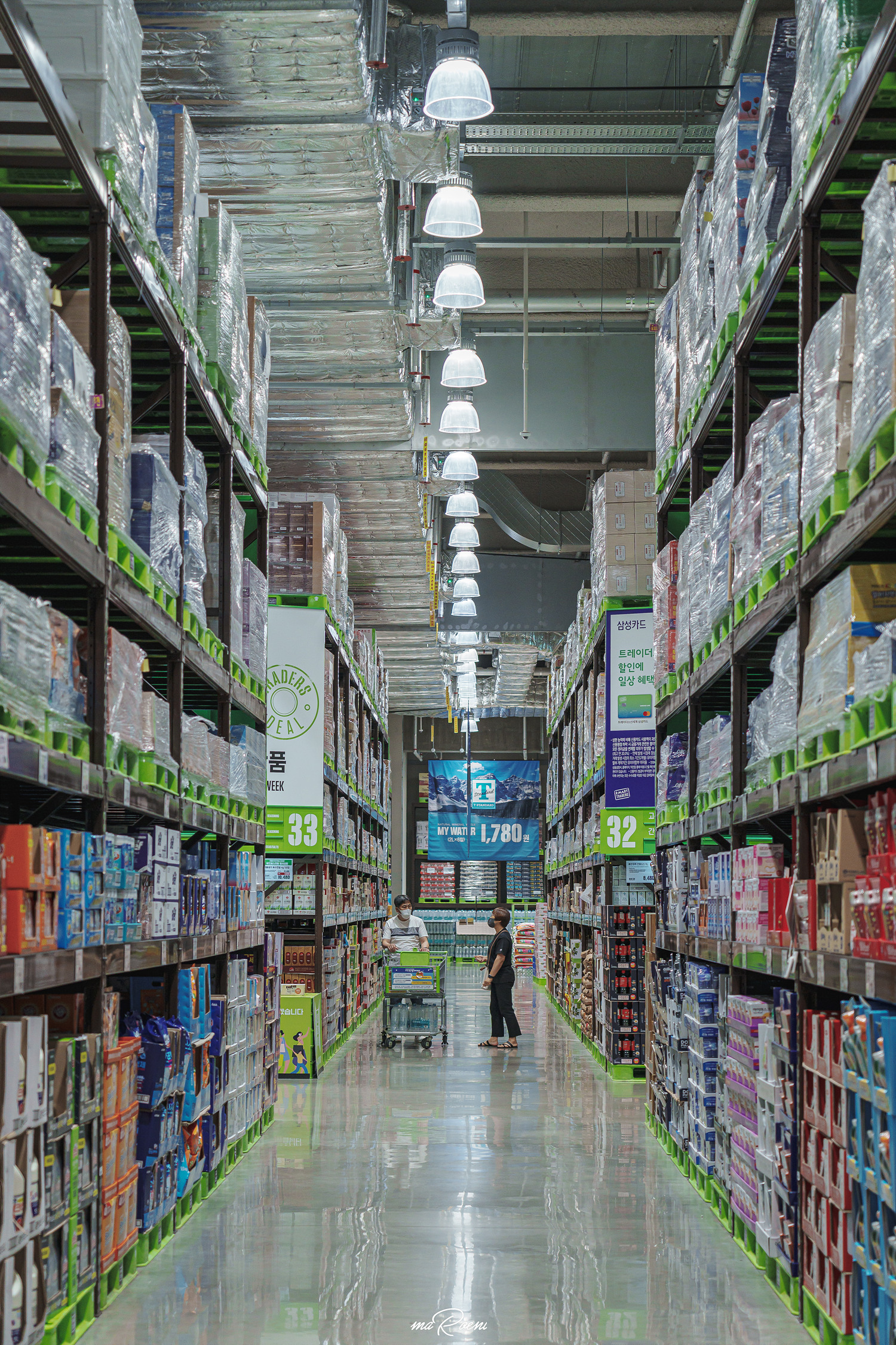 먼저 지하에 있는 이마트 트레이더스부터 구경했다. 확실히 지하 1~2층을 통으로 사용하는 K-창고형 매장이라 그런지 스케일이 어마어마했다. 전체적으로 화이트톤의 조명을 사용하면서도 바닥까지 맨질맨질하니깐 뭐랄까 자동차 전시장에 온 그런 느낌이라고 해야 하나? 무튼 이렇게 사진찍기 좋은 이마트는 처음이었다. 이마트 트레이더스 상품은 대부분 낱개가 아닌 박스로 판매하면서 가격도 저렴하기 때문에 집에 비상식량을 쌓아둘 목적으로 이곳에 방문한다면 돈을 펑펑~ 쓰는 자신을 발견할 수 있을 것이다.