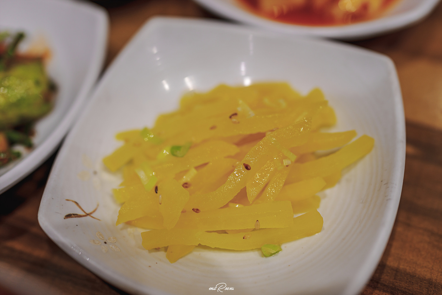 먹다 보니 계속해서 손이갔던 단무지 무침.. 이거 참 마약 같은 맛이다. 맛에 대해 간단하게 설명하자면 단무지에 설탕 조금, 참기름, 깨, 다진 파와 마늘 조금 넣고 조물조물한 맛인데 별것 아닌 것 같은 반찬임에도 자꾸자꾸 먹게 되더라. 김밥 속에서 단무지만 뺀 딱 그맛임ㅋㅋ