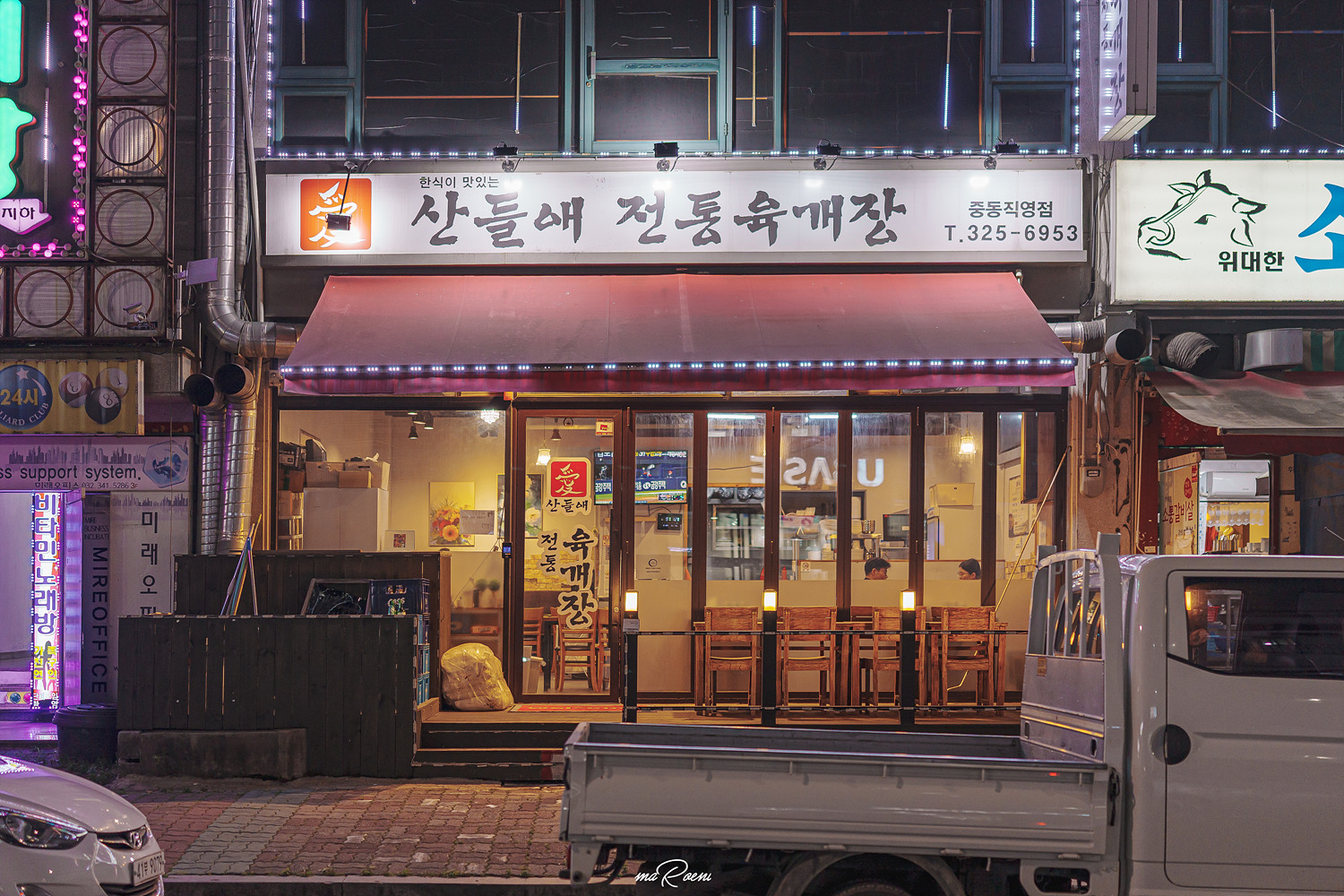 신중동역 육개장 맛집 산들애 전통육개장은 신중동역 먹자골목에 위치하고 있지만, 사람들이 잘 지나다지니 않는 음지쪽에 있어서 초행자들은 찾기가 쉽지 않다. 메인 먹자골목 말고 유베이스 건물 후문으로 가면 바로 발견할 수 있으니 뜨끈하면서도 얼큰한 국물이 땡길때 한번씩 찾아가보는건 어떨까?