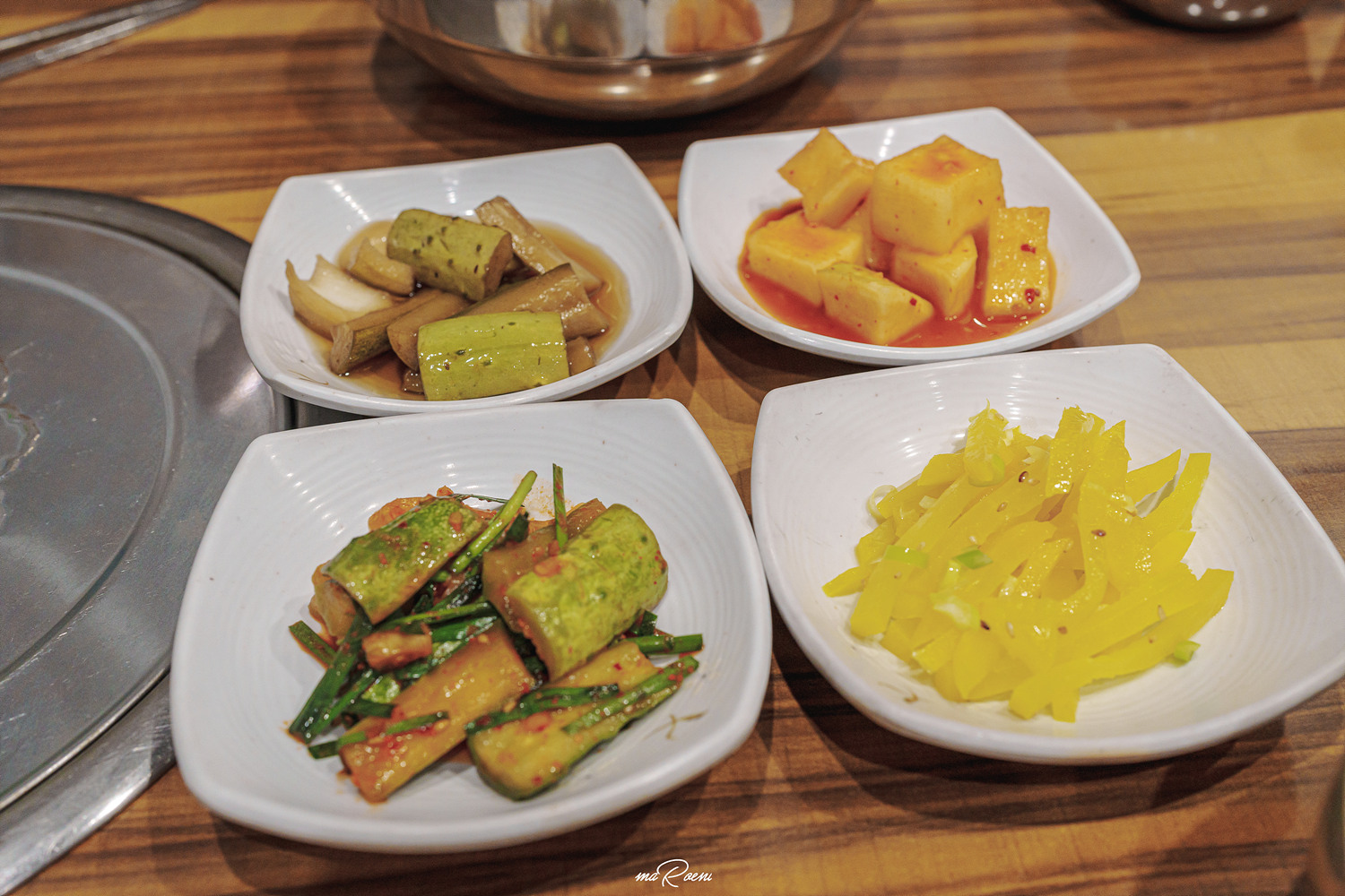 산들애 전통육개장의 기본 밑반찬. 예전에 찾았을 때와는 메뉴가 살짝 달라졌다. 오이피클과 오이소박이, 그리고 석박지랑 단무지 무침같은게 있었는데, 전부 다 무난무난한 맛이었다.