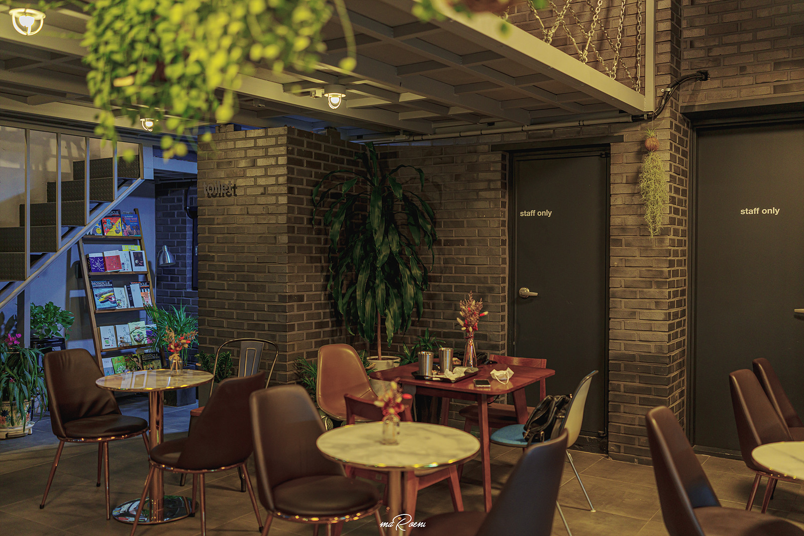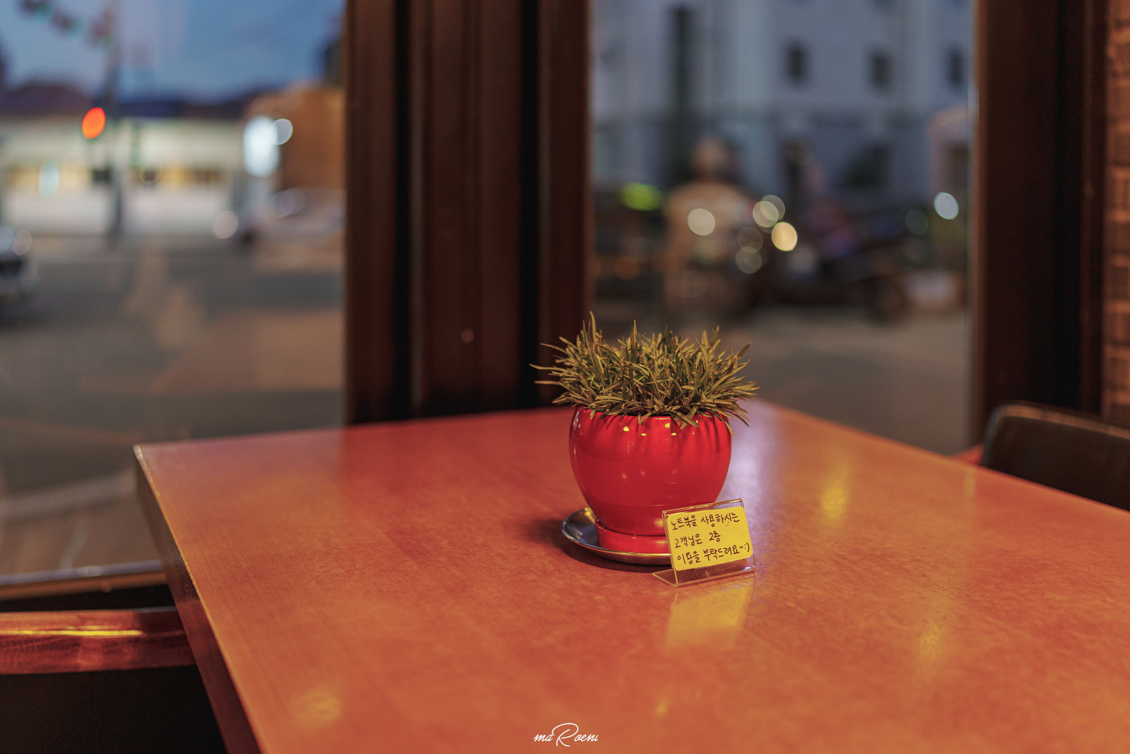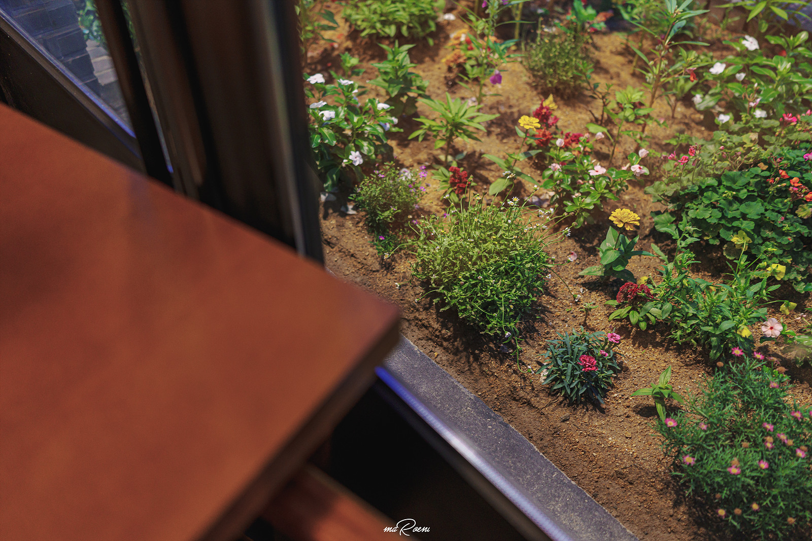 외부에서 보는 카페도 아름다웠지만, 실내로 들어가니깐 감성이 더 뿜뿜 느껴졌다. 특히 작은 정원이 보이는 1층 창가 자리는 커피를 마시며 창밖으로 보이는 꽃들을 바라보는 맛이 제법 쏠쏠할 것 같았다. 노트북 자리로 좋아보였지만 아쉽게도 더 모노크롬에서는 노트북을 2층에서만 사용 가능이라고 했다.