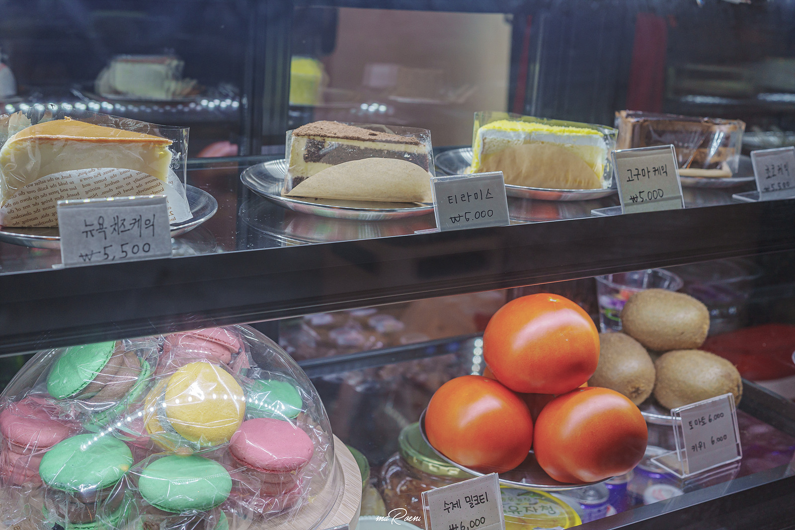 더 모노크롬의 메뉴판이다. 나는 이곳에 처음 와봤는데.. 여자친구는 친구들과 몇 번 와봤다면서.. 가격은 조금 비싼편이지만 맛은 있다고 했다. 맛을 보증하는 사람이 있으니 더더욱 믿음이 가는 부분이겠다. 다양한 디저트도 판매하고 있었는데 케이크랑 마카롱, 그리고 생과일도 판매를 하는 모양이었다. 우리는 심플하게 커피만.