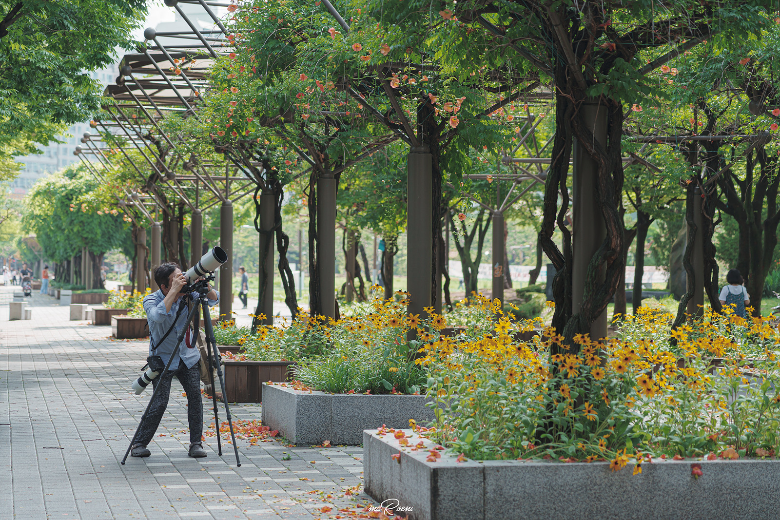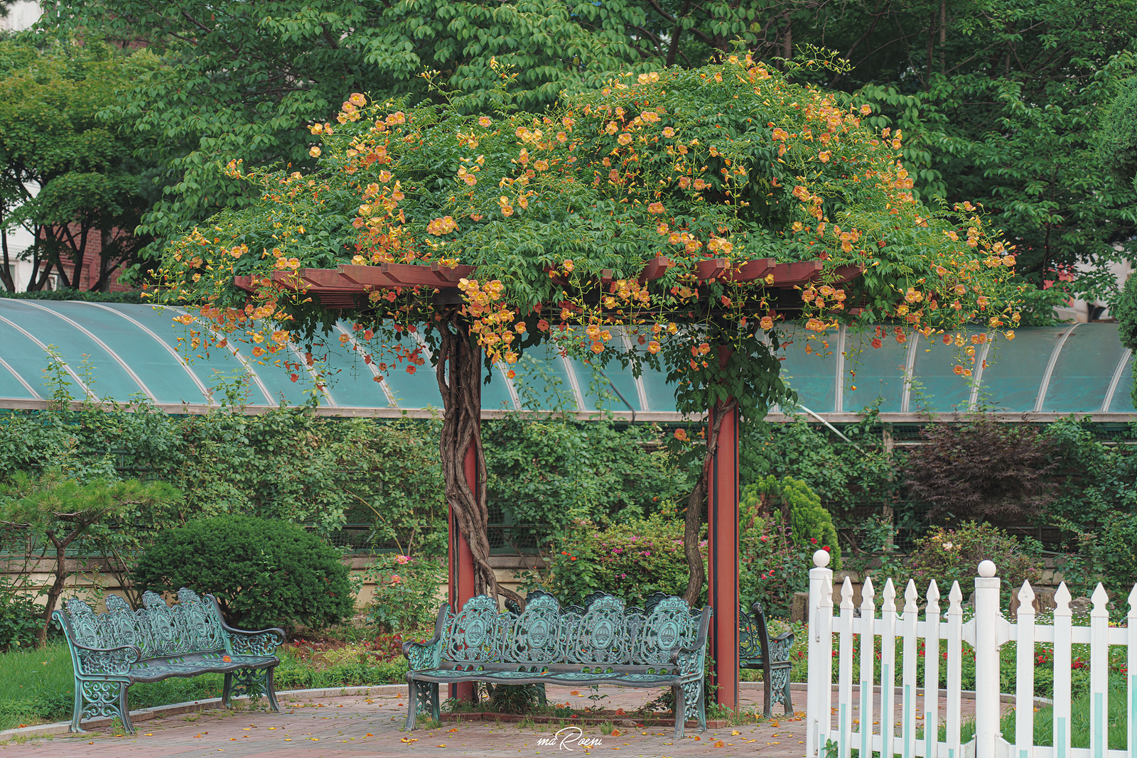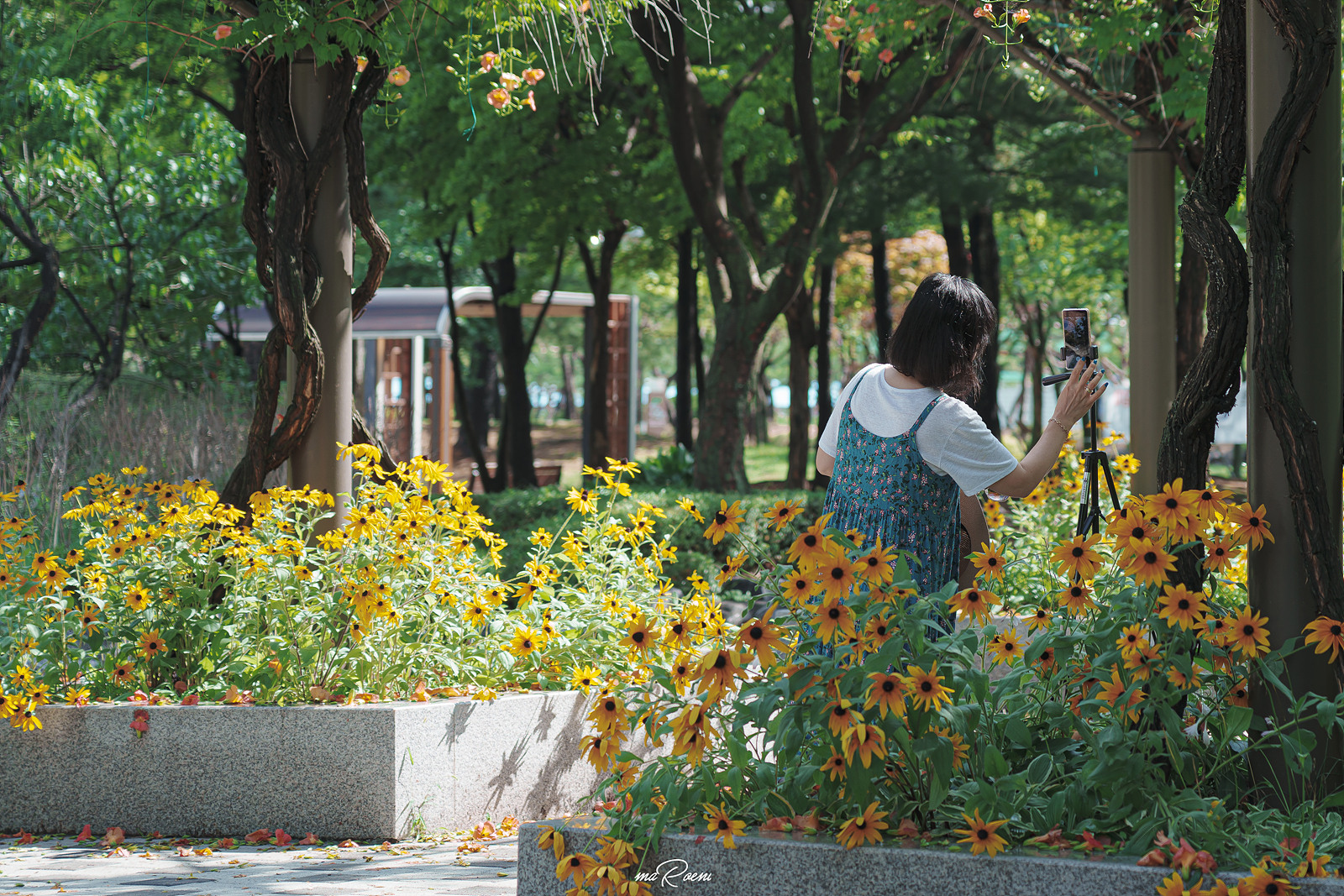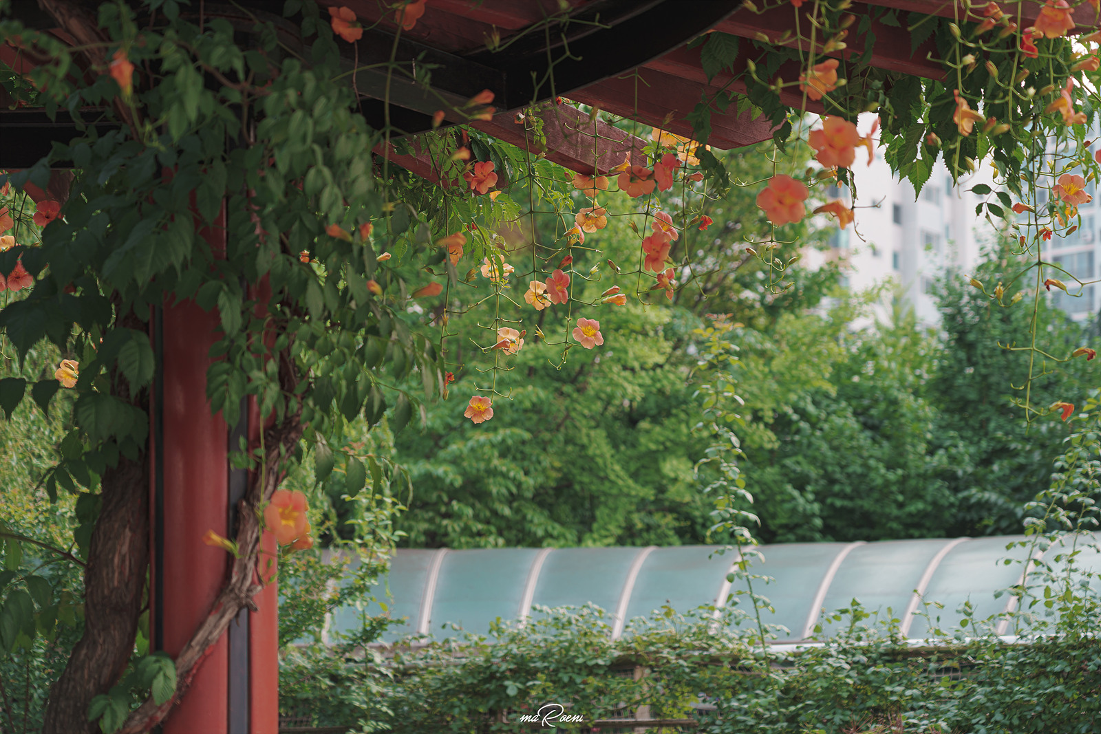 쉼터 지붕 위에는 능소화가 정말 맛깔나게 피어있고, 쉼터 주변으로 형형색색의 꽃들이 심어져 있다. 이곳은 원래 필자가 잘 찾지 않는 장소였지만, 중앙공원 능소화터널 상태가 말이 아니었기에.. 하는 수 없이 찾아옴. 참고로 이 장소는 환자들도 이용하는 장소라, 최대한 환자가 없을 때 사진을 찍고 빠지는 것을 권장한다.