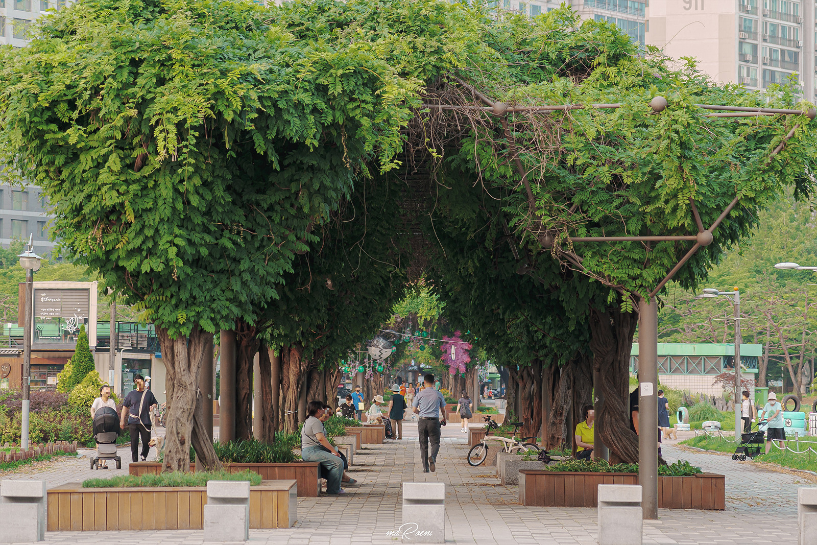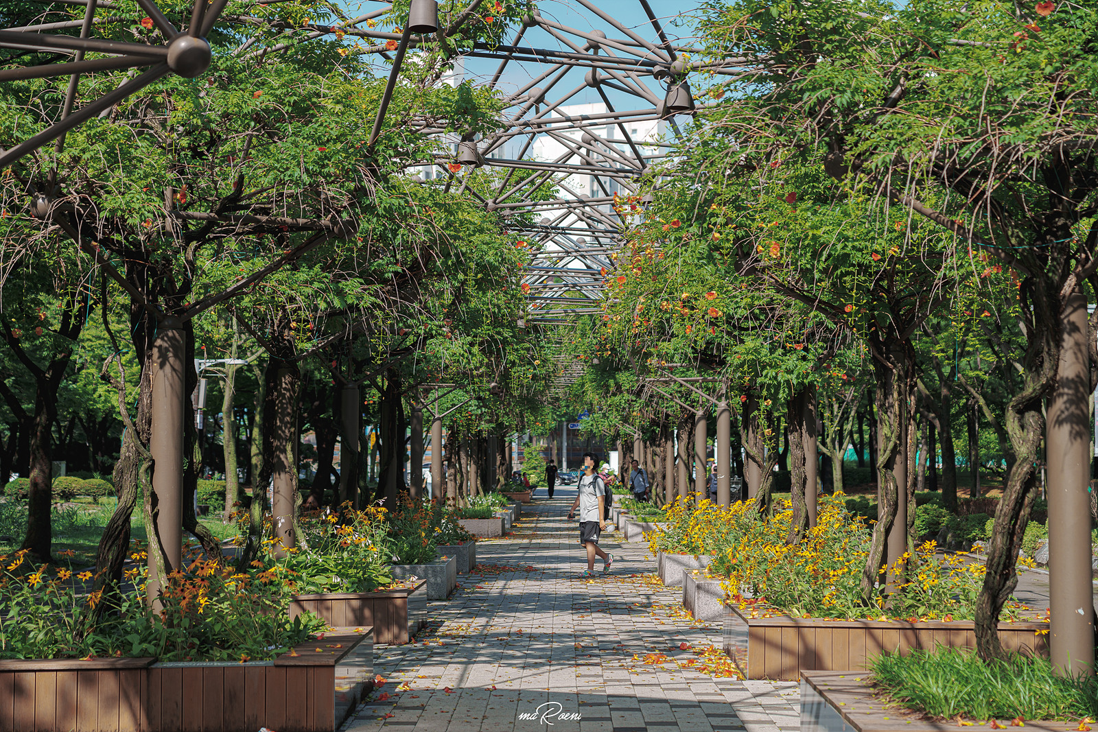 중앙공원에 도착하자마자 바로 능소화터널부터 들어갔는데.. 뭔가 작년과는 느낌이 달라도 너무 달랐다. 작년 이맘때쯤의 능소화터널은 온통 주황빛이었고 터널 이곳저곳에 능소화가 주렁주렁 달려있었는데 올해는 뭔가 나사가 빠진듯, 아쉬워도 한참 아쉬웠다. 마침내 옆을 지나가시는 중앙공원 환경미화원 한분이 지나가시길래 실례를 무릅쓰고 여쭤봤다. "저.. 혹시 능소화터널이 조금 축소된건가요..? 그게 아니면 가지치기를 하신건가요..?" 라고 여쭤보니 가지치기를 하셨다고 하더라..