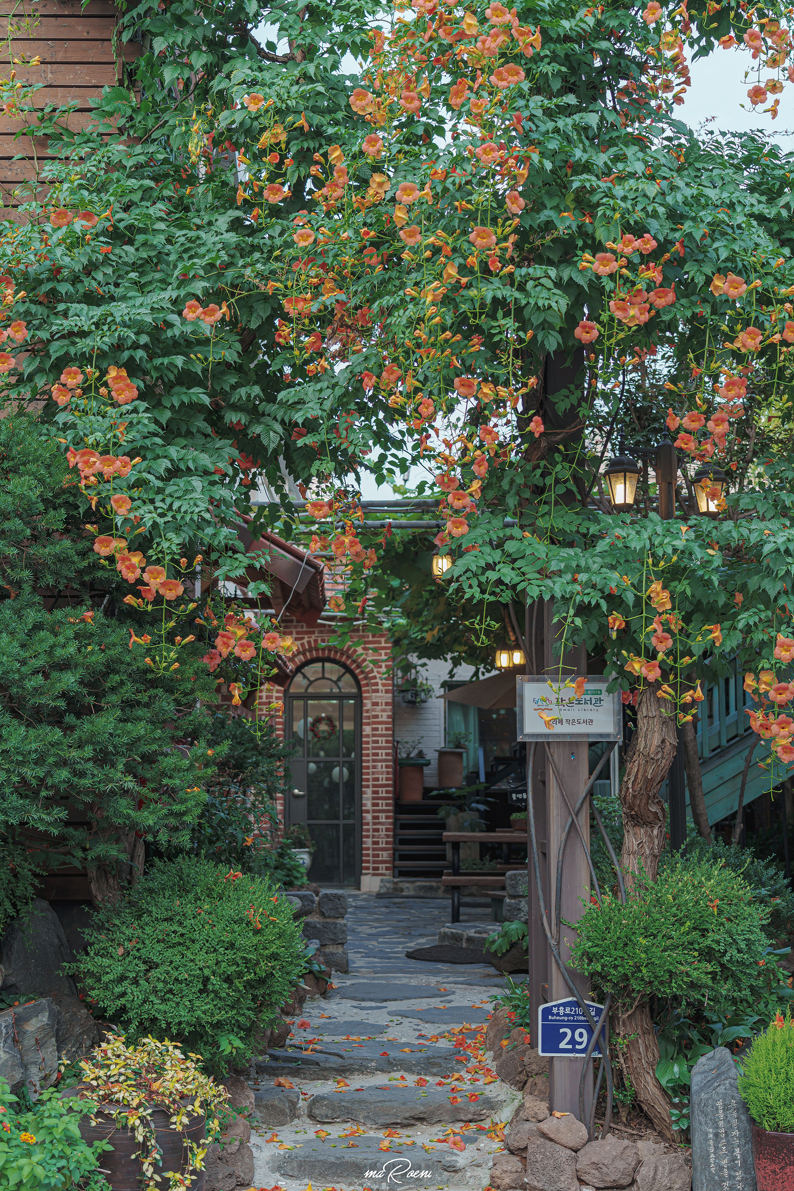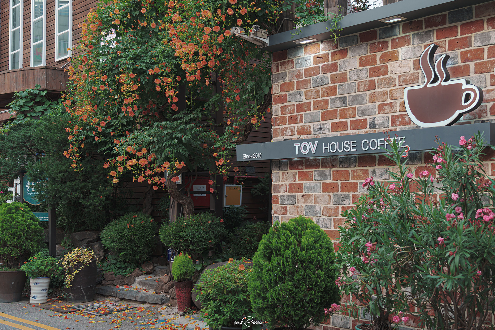 두 번째 능소화 스팟은 부천 TOV HOUSE(토브하우스)라는 카페다. 카페 바로 옆에 있는 생문교회에서 운영하는 토브하우스는 여름에는 능소화가 정말 예쁘게 피어나서 사진 찍기가 정말 좋다.