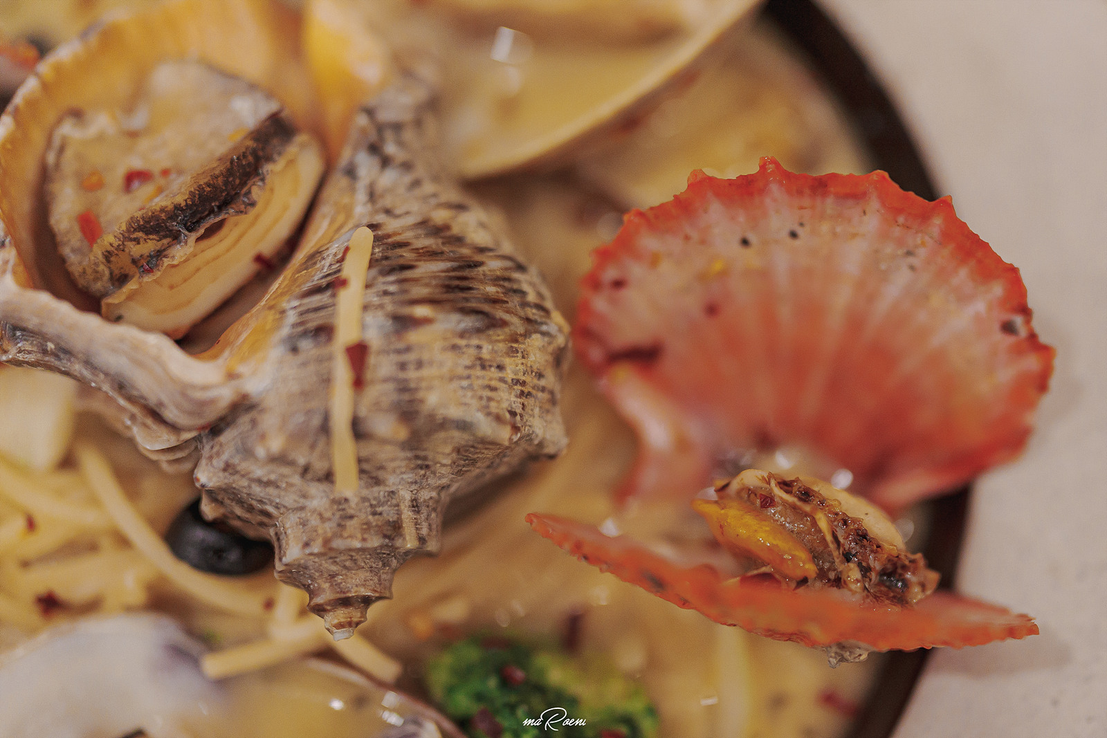 듬뿍 봉골레는 딱 그 이름답게 해산물이 정말 듬뿍 올라가 있었다. (맨날 우리가 먹어대던 저가형 봉골레에 들어있던) 바지락이 아니라 형형색색의 조개들이 들어있었는데, 간도 짭짤하게 잘 배어있었고 조개들도 탱글탱글하니 아주 맛좋았다. 국물맛은 일본에서 먹었던 바지락 술찜이랑 비슷했음. 거기서 향신료의 맛이 살짝 더 가미된 느낌이랄까.