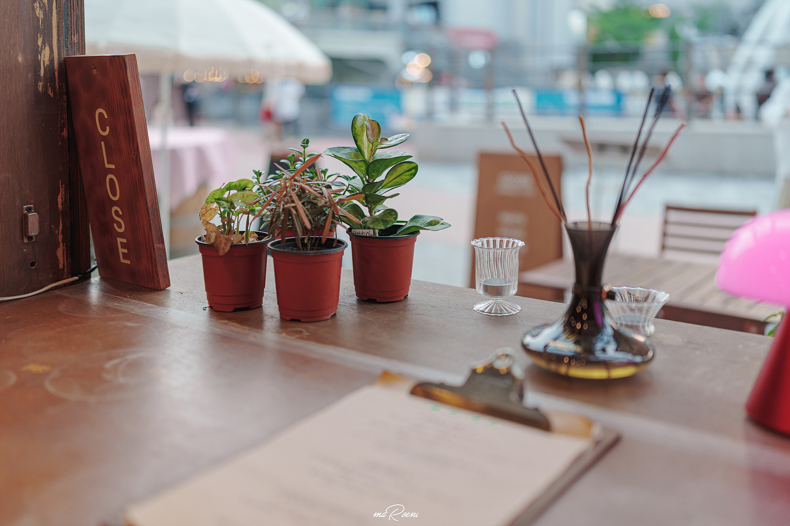 창가 자리가 제일 이뻐 보여서 앉고 싶었는데, 삼각대며 가방이며 카메라며.. 짐이 주렁주렁이어서 앉지를 못했다. 아쉬운 마음에 사진이라도 남겨봤음. 사진을 찍으면서 참 좋았던건, 사장님께서 사진이 이쁘게 나오는 곳과 사진을 찍을 수 있도록 조명(?)장치를 켜주신다는 것.. 여태 여러 음식점에서 사진을 찍어봤지만 이런 곳은 또 처음이네ㅋㅋ