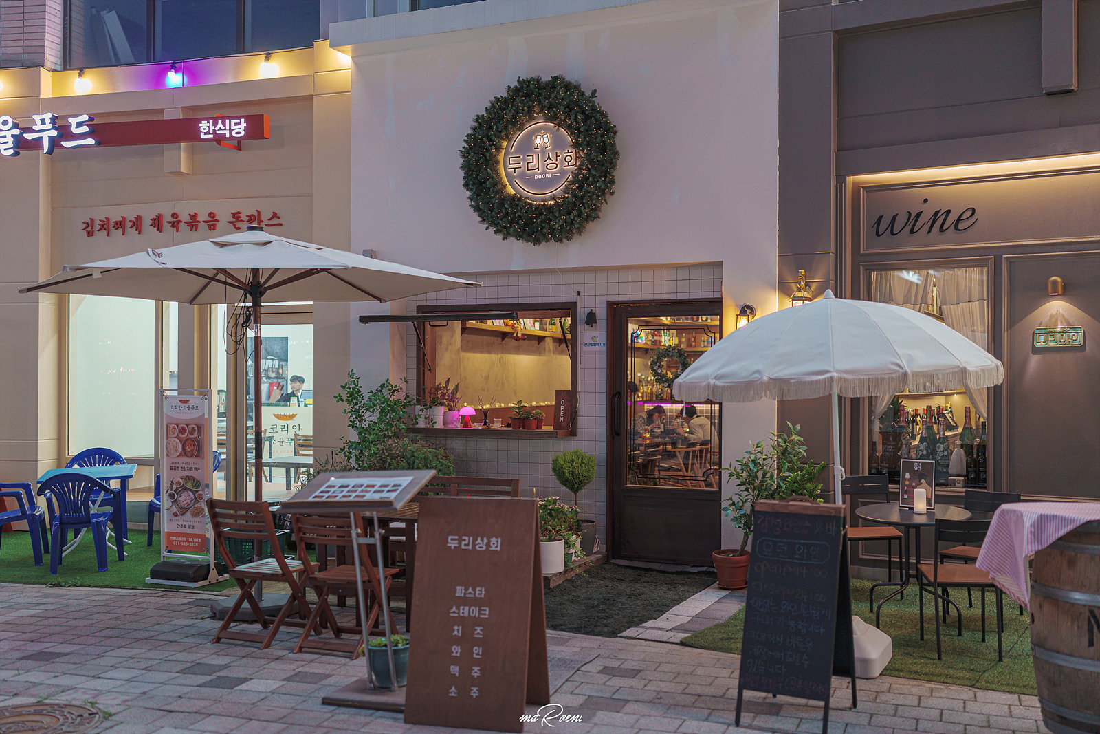 장기동 두리상회가 위치한 곳은 김포 라베니체 마치에비뉴 2차상가 1층이다. 이렇게 말해서 바로 알아볼 사람은 없을듯..? 조금 쉽게 설명하자면.. 사람들이 제일 많이 몰리는 수변 메인홀쪽에 무대가 하나 있는데, 그 근방을 빙 둘러보면 동그란 간판이 하나 보일 것이다. 그곳이 바로 두리상회. 그 근방에 입점한 매장들이 전부 다 감성적으로 꾸며져 있어서 잘 확인해야 한다.