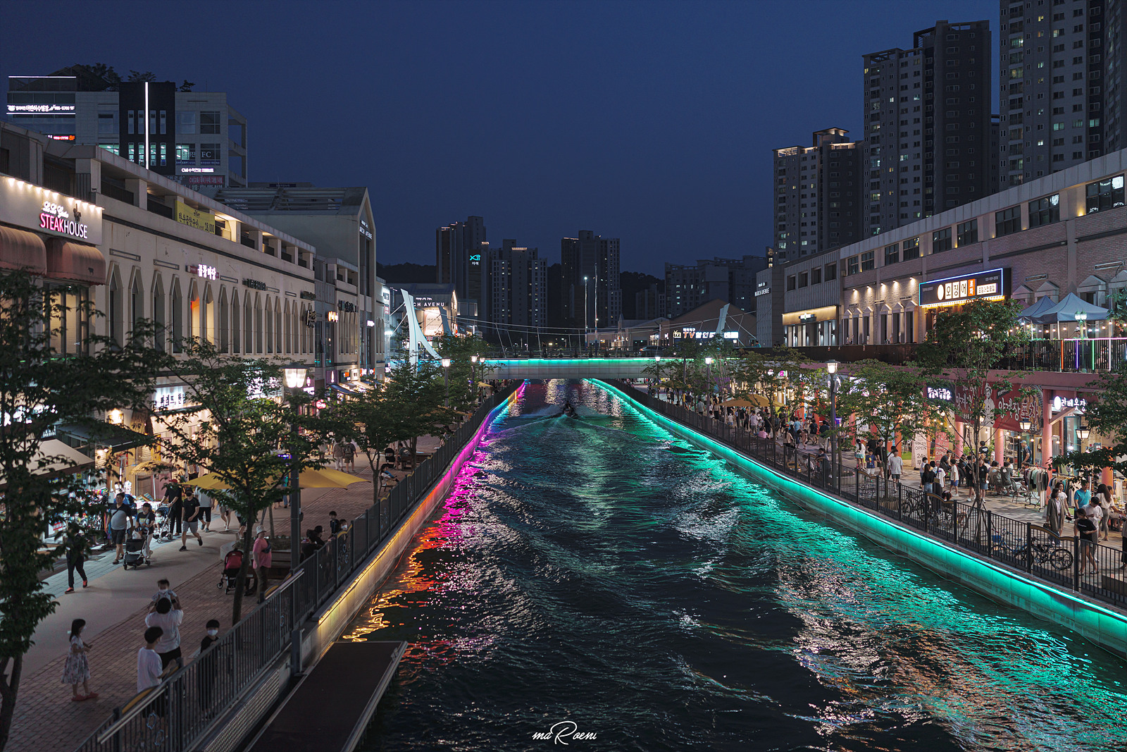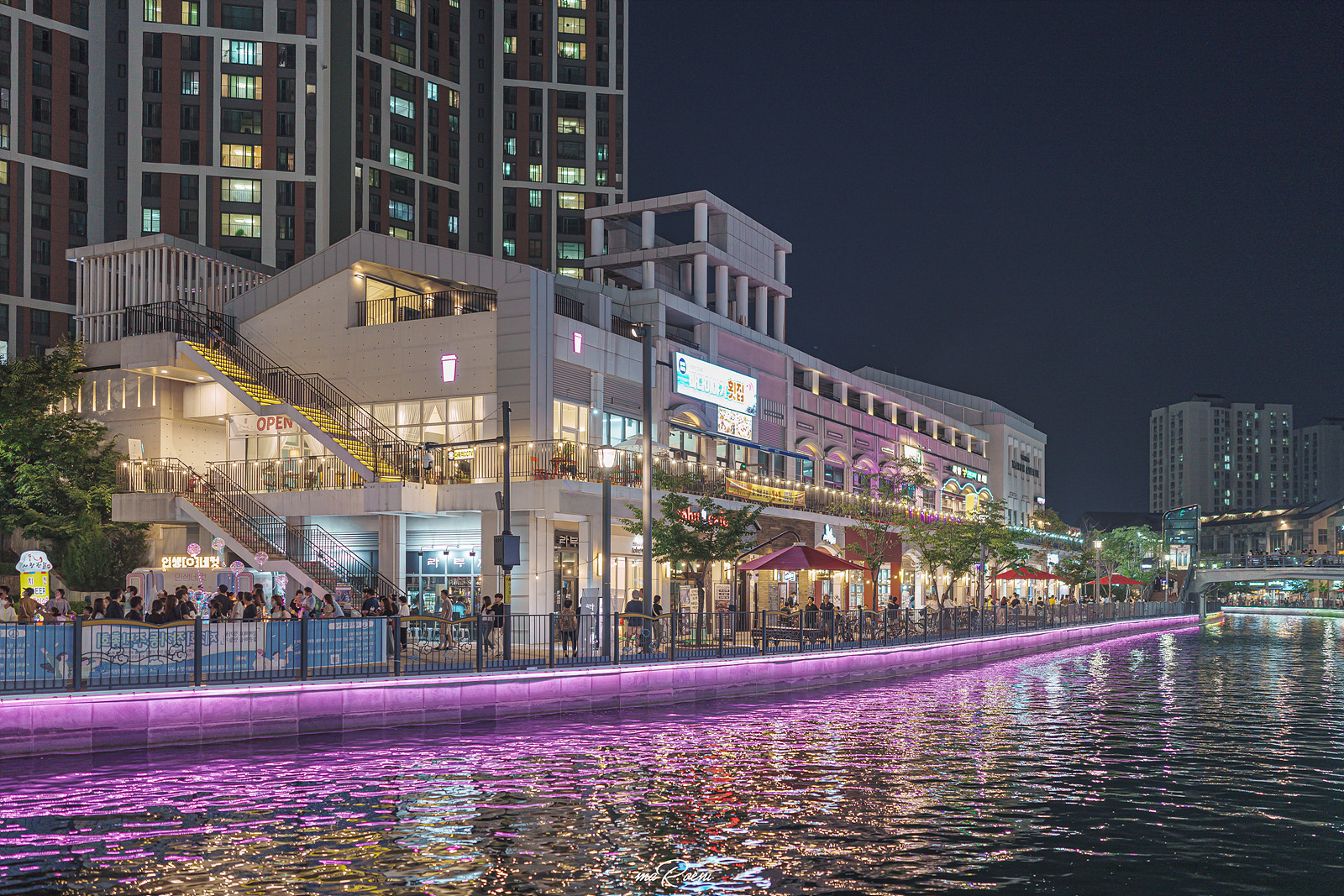 수변에 켜진 조명과 밤거리를 환하게 비추는 간판들, 물 위에 둥둥 떠다니는 보트들에 켜진 조명까지! 왜 사람들이 김포 라베니체 야경을 극찬하는지 이제야 알 것 같았다. 왕복 3시간 거리라 허탕을 치고 돌아가면 어쩌지 싶었는데 이 광경을 보는 순간 그 생각이 싹 사라짐ㅋ