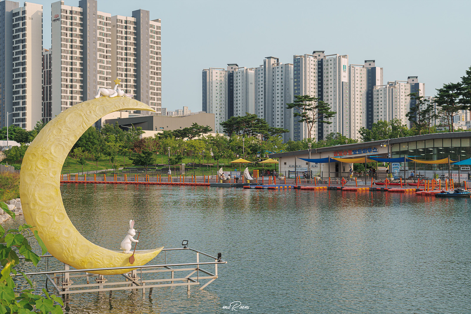 길게 늘어선 보트들 중에서 초승달 모양의 보트가 바로 문보트이다. 최대 성인 2명과 아이 1명이 탑승 가능한 문보트는 김포 라베니체의 명물이다.