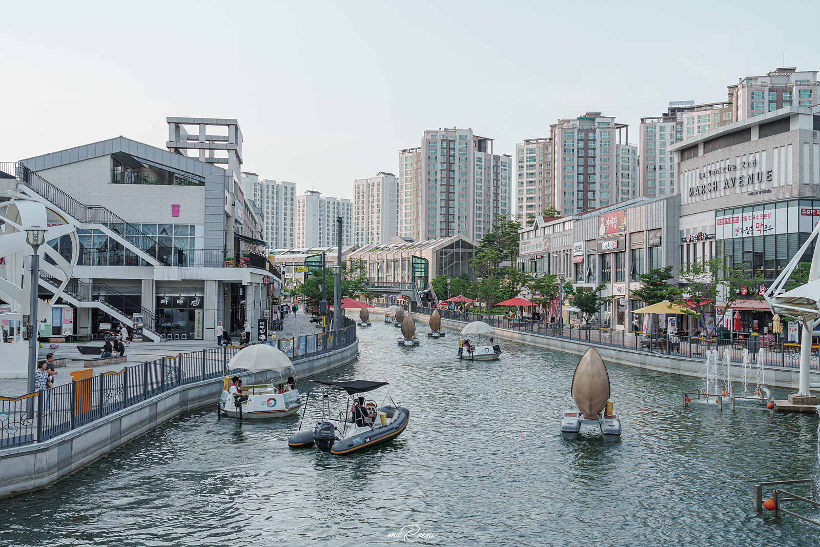 라베니체 수로를 따라 유유히 흘러가는 문보트. 이 보트는 한강중앙공원의 금빛수로 보트하우스에서 대여할 수 있는 김포 라베니체 문보트로 자세한 내용은 하단을 참고하시길.