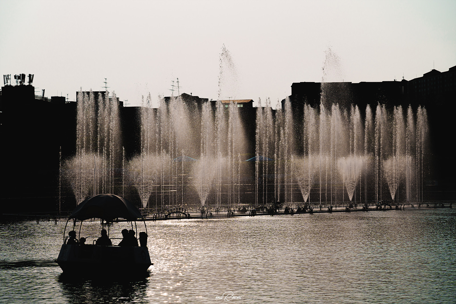 한강중앙공원에는 또 다른 볼거리가 있다. 바로 음악분수다. 음악분수는 말 그대로 음악에 맞춰서 분수가 나오는 시설물로 음의 높낮이, 음악의 분위기에 따라 펌프의 세기와 조명 색상이 정해진다고 한다. 연출자가 직접 연출하는 경우도 있지만 미리 짜놓은 프로그램을 통해 자동연출도 가능하다고.. 아무튼 분수가 나오는건 김포 라베니체에서 보는게 처음이라 영상으로도 남겨봤다.