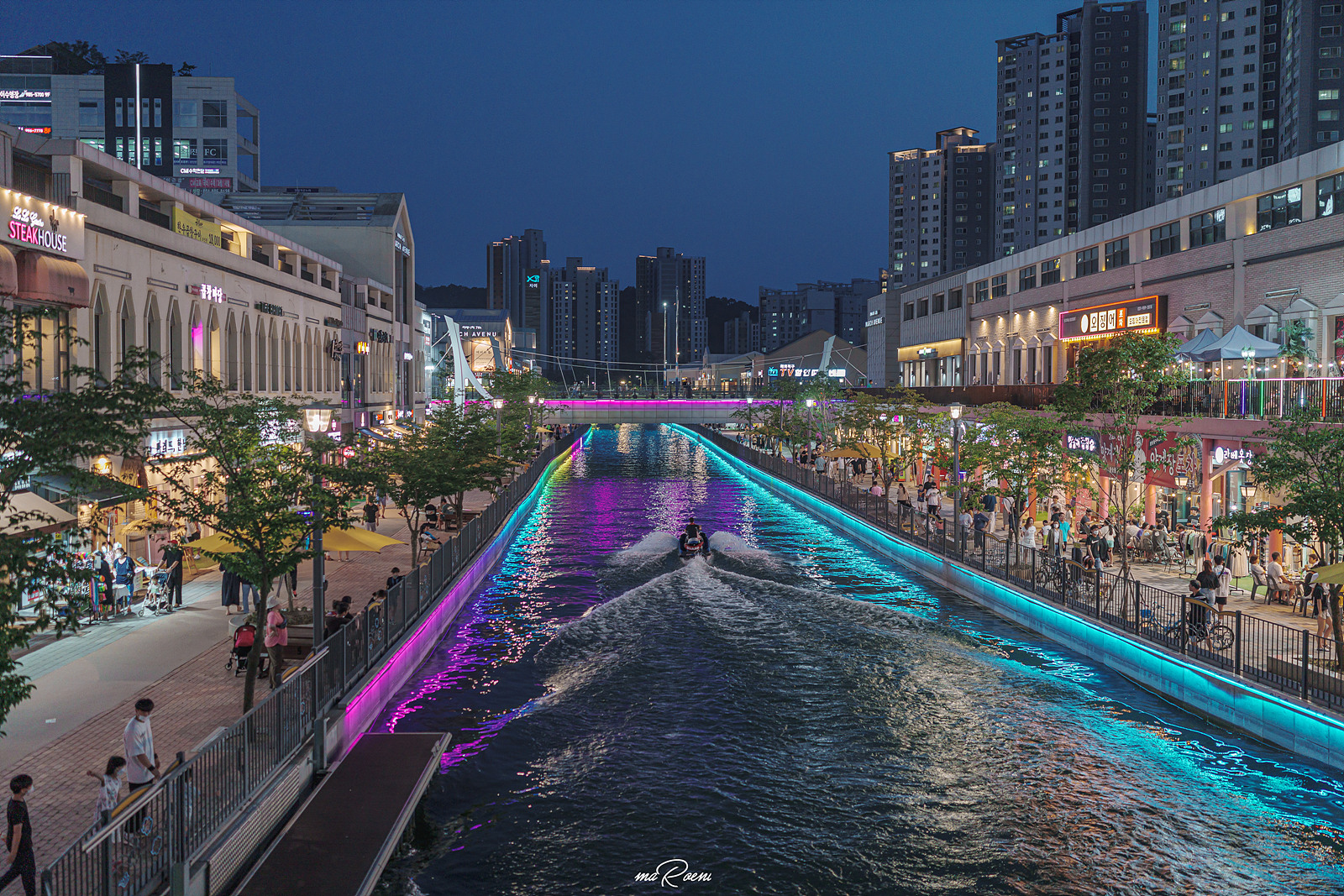 해가 떨어져도 김포 라베니체 문보트는 열일중이다. 보트들이 없었다면 수로가 조금 심심해보였을 텐데 가끔 지나다니는 보트들이 그 심심한 비쥬얼을 꽉꽉 채워준다.