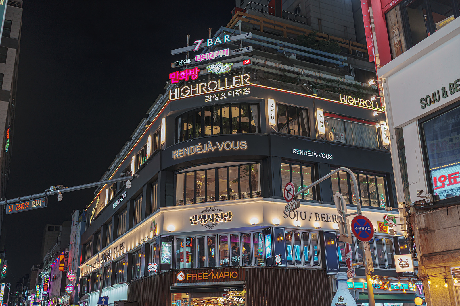 랑데자뷰에서 내려다보는 로데오거리 뷰. 여긴 주간이나 야간이나 아프리카? 유튜브? 아무튼 스트리밍 방송을 하는 사람들을 많이 접할 수 있는 장소다. 인터넷에서 흔히 말하는 문신 돼지들도 많고 욕을 듣기 싫을 정도로 내뱉는 잼민이들도 많은.. 아무튼 필자의 정서적 취향에는 맞지 않는 그런 장소다.
