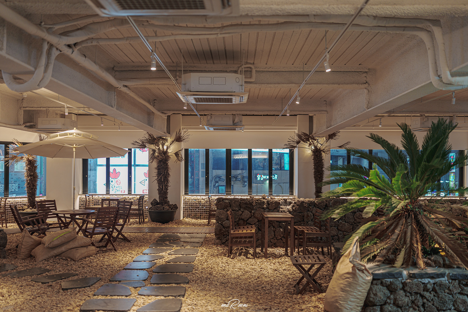 편의점 방향에 상가로 올라가는 계단이 있는데, 계단에 오른 후 엘리베이터를 타고 3층으로 올라가면 랑데자뷰를 만날 수 있다. 아무래도 상가이기 때문에 랑데자뷰 입구가 따로 있을 줄 알았는데 놀랍게도..! 엘리베이터에서 내리는 순간 사진과 같은 장면이 펼쳐지더라. 이건 좀 감동받았었음. 첫인상부터가 여기는 제주도 감성 카페야! 라고 말하는 것처럼 뭔가가 참 뭔가한.. 그런 느낌적인 느낌이 있다.