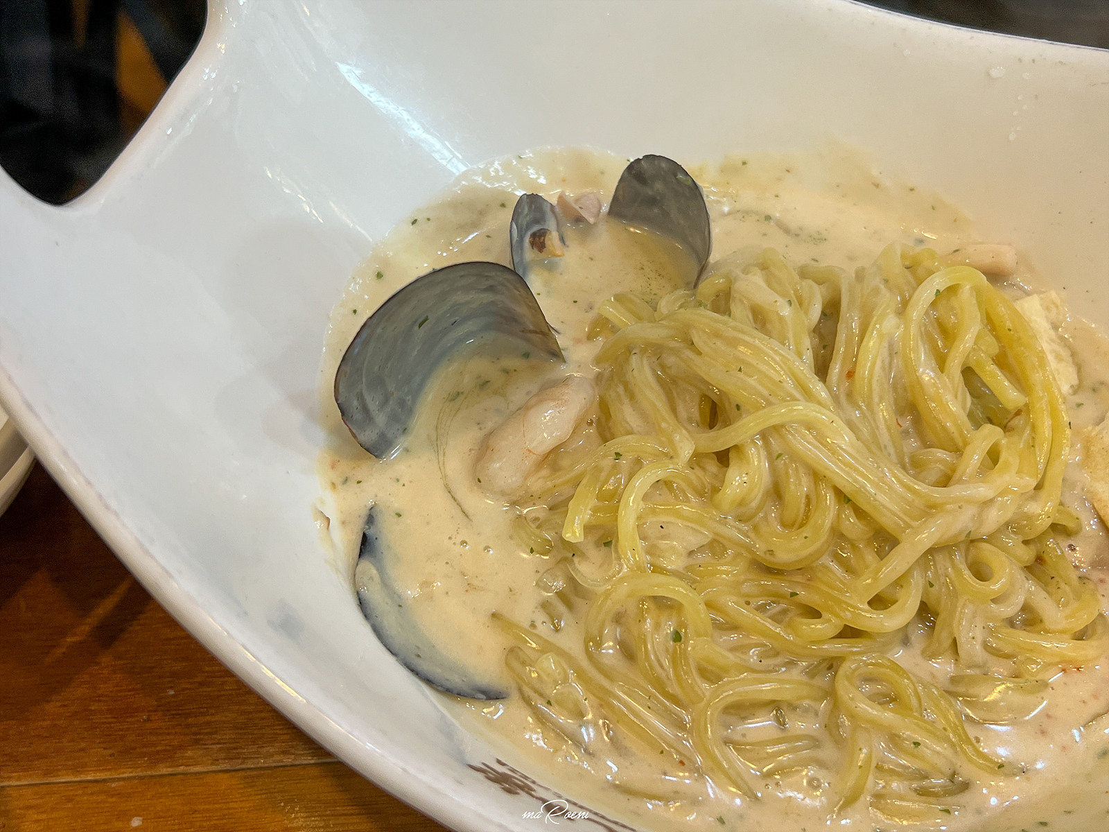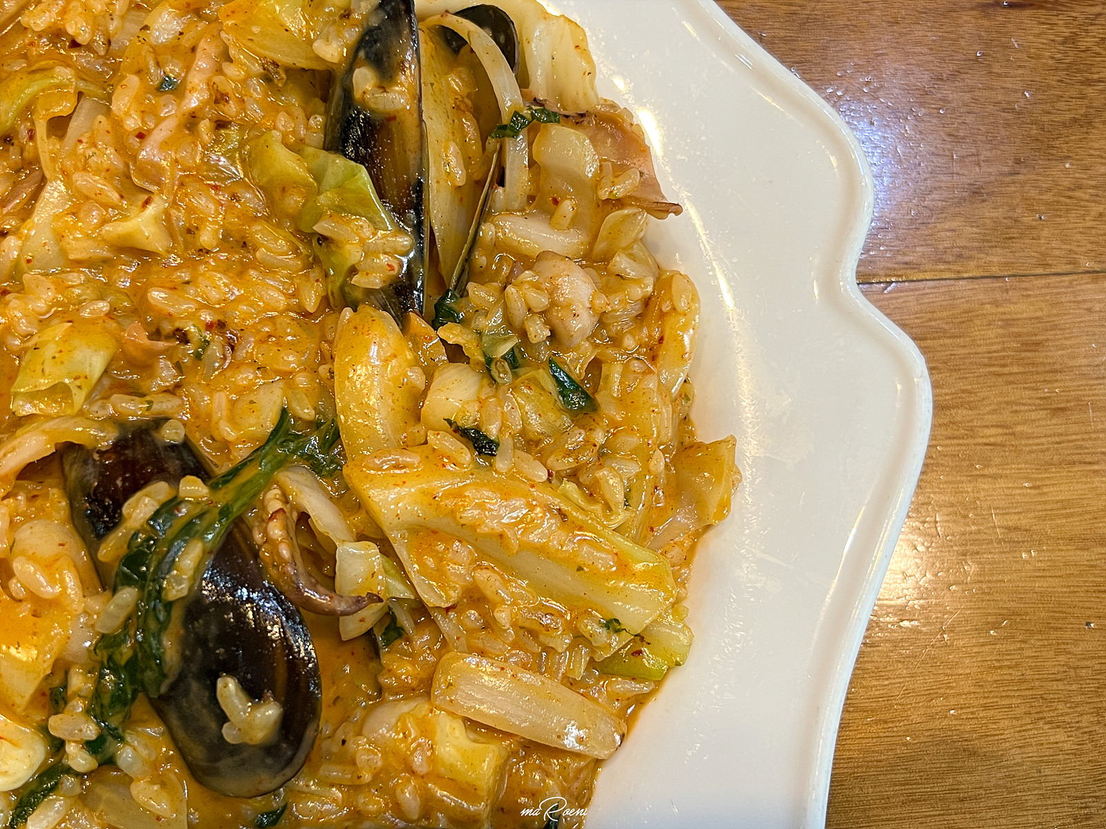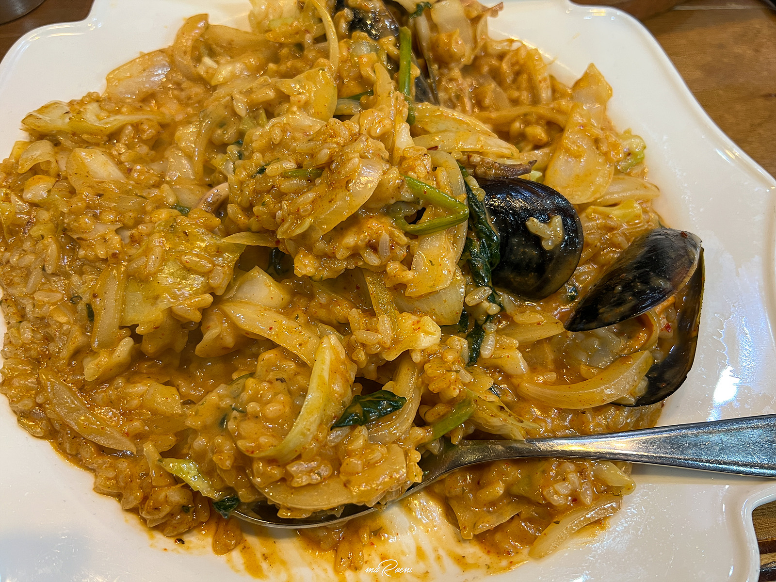 다음으로 필자가 주문한 핫시크 리조또다. "지중해풍 해산물 크림 리조또에 차뽕의 강렬하고 매콤한 불맛을 더해 탄생한 니뽕내뽕 버전의 해산물 크림 리조또" 라고 설명되어 있는데... 먹어보면 그냥 차뽕에 밥 말아서 크림 조금 추가한 그런 맛이다. 차뽕에서 풍기는 불맛만 느껴질 뿐.. 다른 맛은 잘 느껴지지 않는 그저 그런 맛..