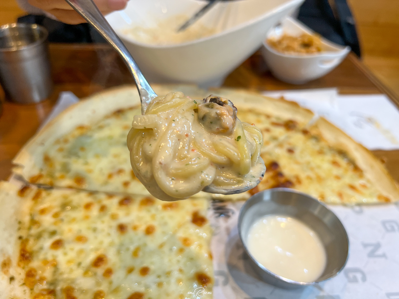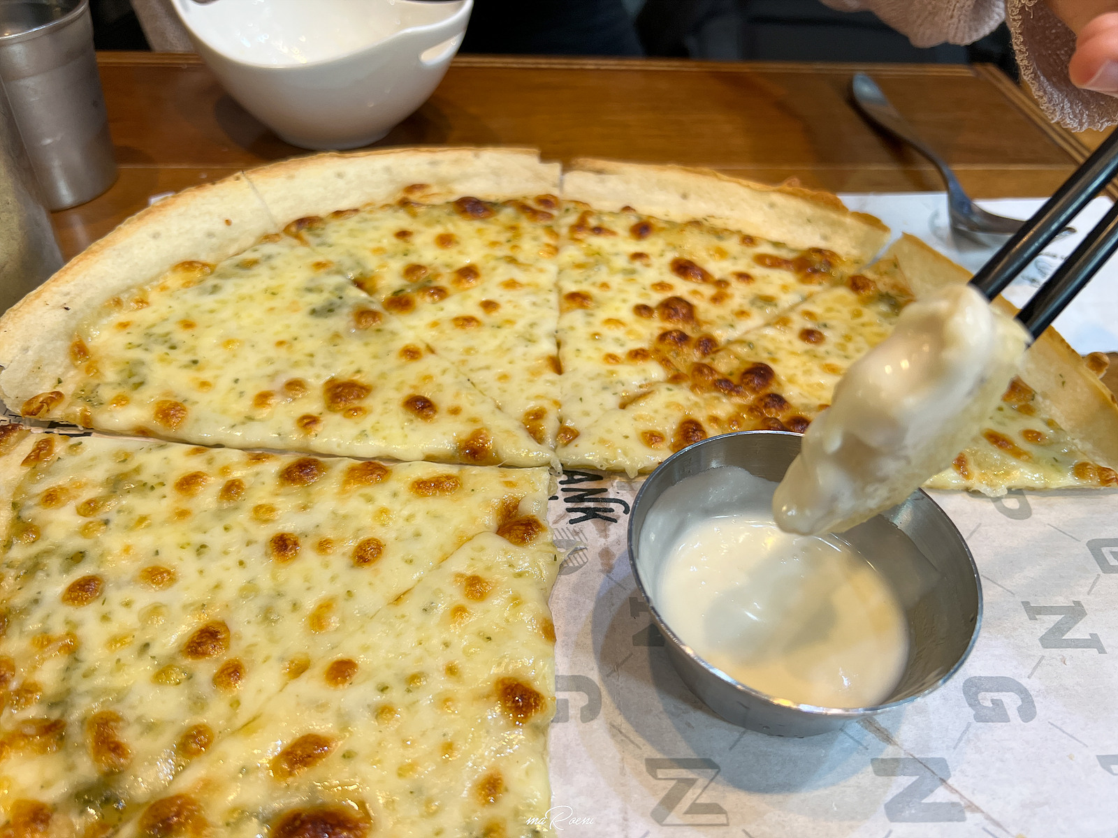 마늘의 풍미가 가득 느껴지는 내피자는 옛날이나 지금이나 맛이 한결같아서 좋다. 한 가지 달라진 점이 있다면.. 휘핑크림이 요거트 크림 같은 걸로 변경되었다는 것 정도? 니뽕내뽕 피자는 휘핑크림이랑 먹는게 진리인데.. 이 소스는 뭔가 안어울리는 것 같았다. 소스가 따로 겉도는 느낌이랄까? 그냥 맛이 느껴지질 않았음.
