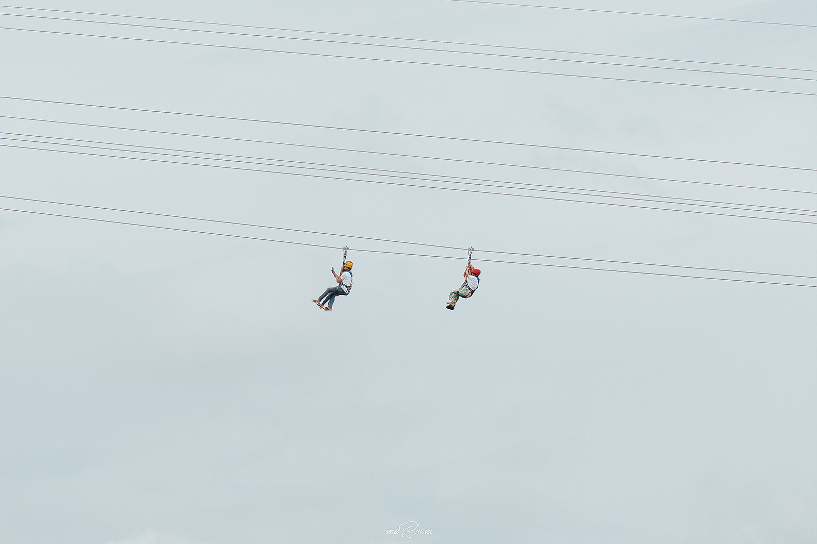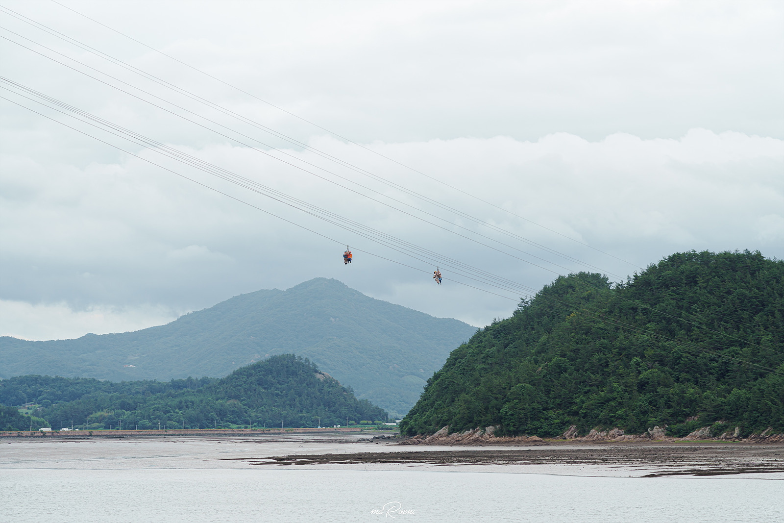 가우도 짚라인의 길이는 약 1km(973m). 눈으로 보기에도 길이가 어마어마하다. 이 길이를 오로지 줄 하나에 의지해서 내려간다는 것은 고소공포증 보유자인 내가 볼땐 미친짓이나 다름없었다. 거기다가 하강시간이 1분 남짓이면 도대체 얼마나 빠른건지.. 감도 오질 않는다. 겁쟁이인 나는 그냥 바라만 보는 것으로 만족.