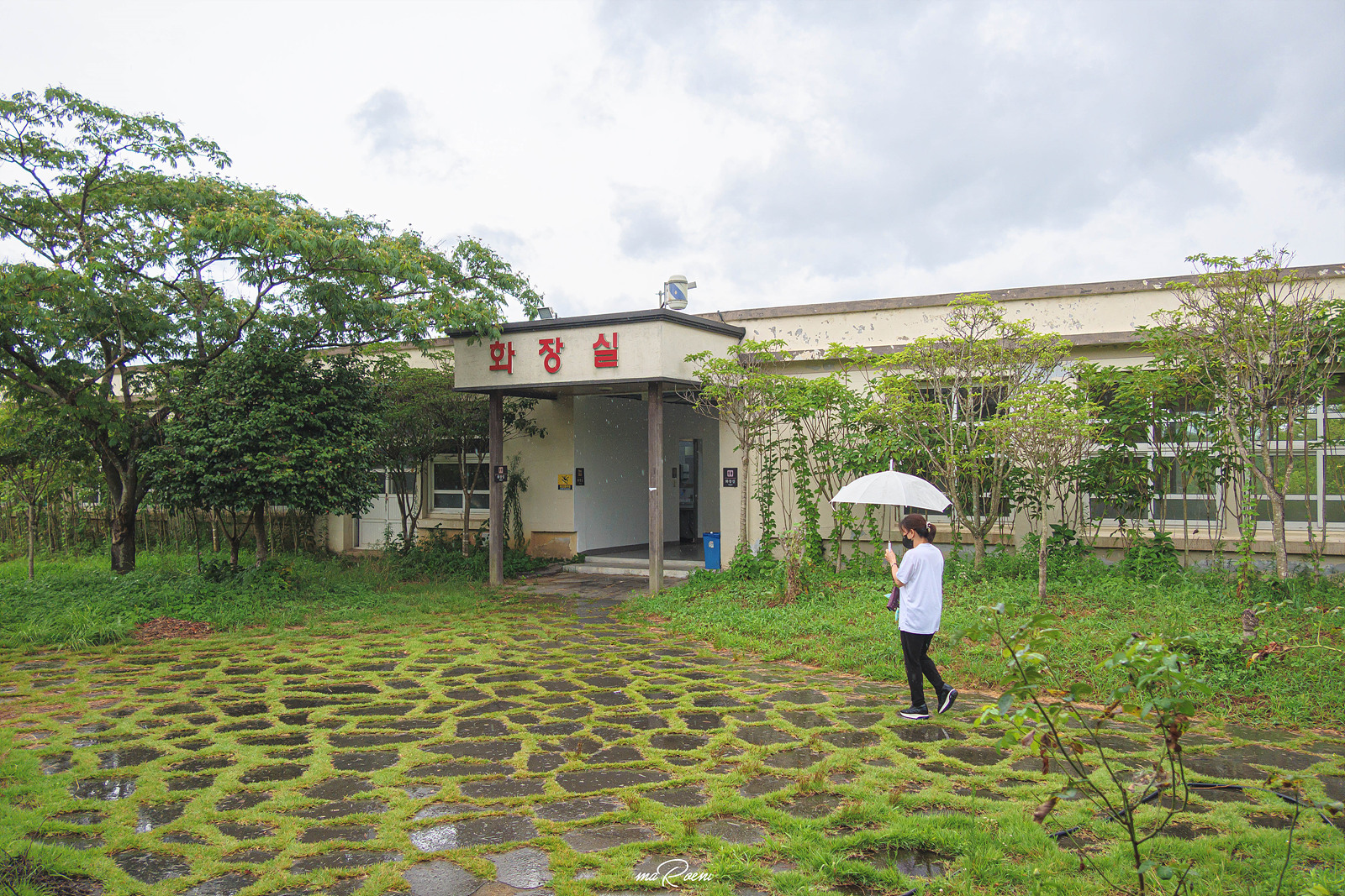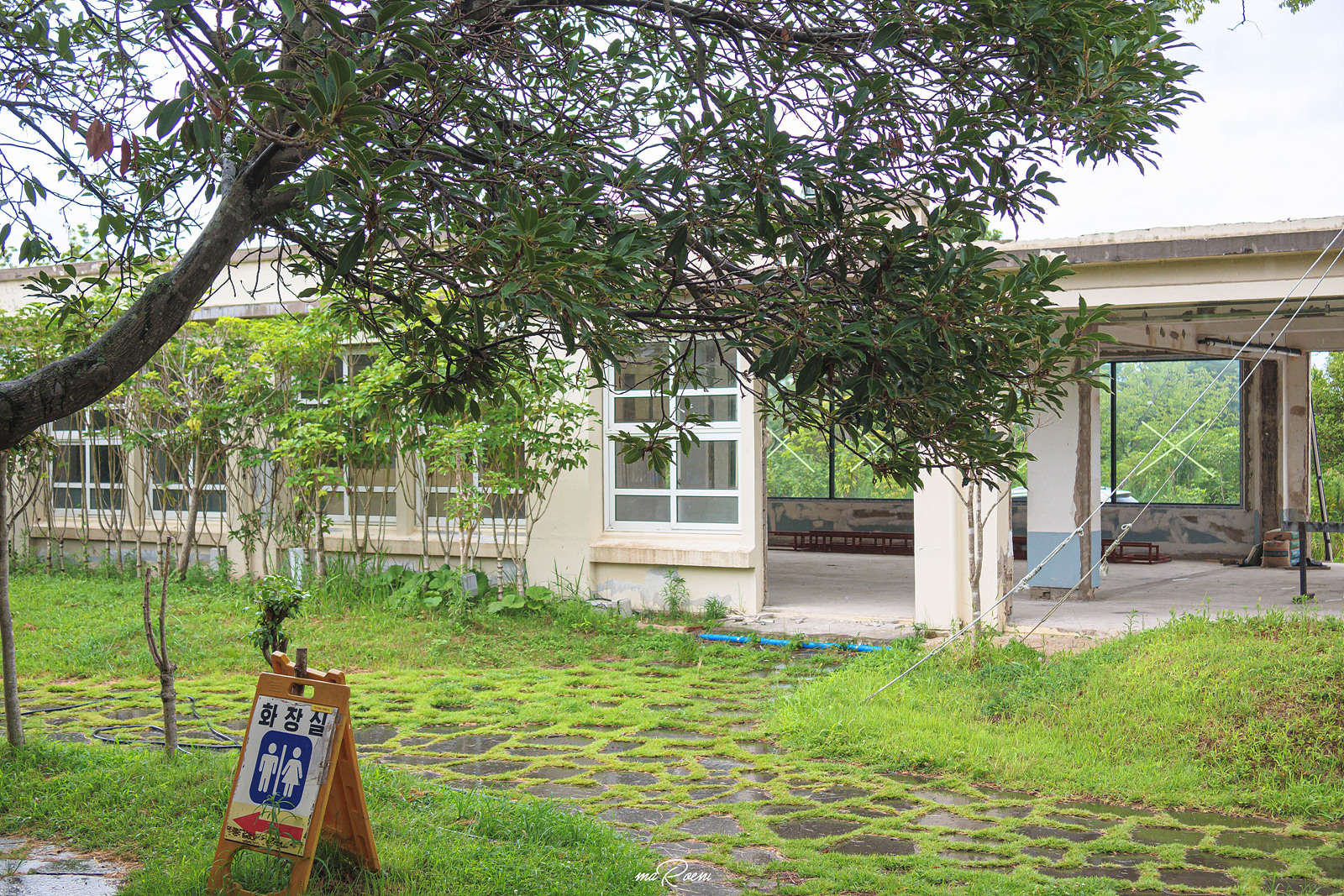 황칠코리아 목삼정은 화장실이 학교 건물 쪽에 있는데, 이쪽은 폐교가 되기 전의 모습을 그나마 잘 간직하고 있었다. 보통 이런 시골의 학교를 분교라고 하던가? 모든 장소를 꼼꼼하게 살펴보고 싶었지만, 비까지 주룩주룩 내리는 바람에 화장실의 분위기는 영화에서나 볼법한 그런 느낌이 들어서 이쯤에서 퇴각하고 식당으로 들어가기로 했다.