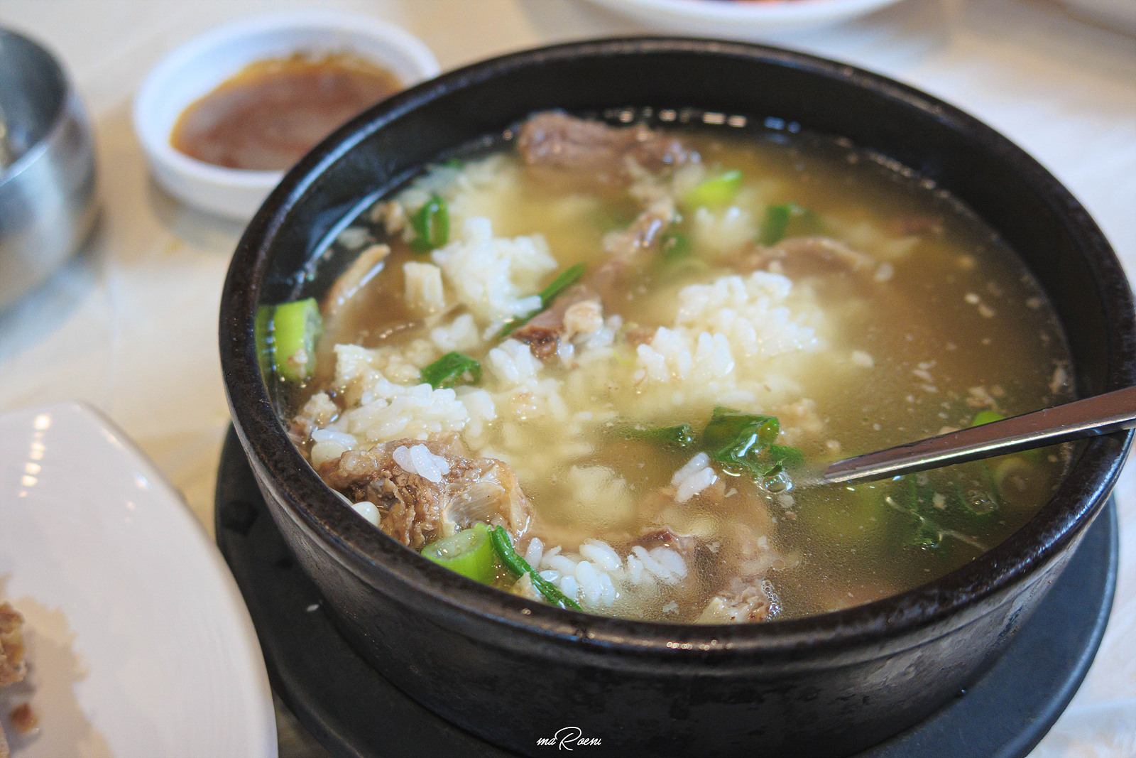 밥까지 말아먹으면 상황 종료. 여자친구는 보통 국밥을 주문하면 밥 따로 국 따로 먹는 스타일인데, 여긴 입에 맞았던 모양인지 오랜만에 밥알을 샤워시키고 계시더라. 황칠나무 덕분인지 국물에서 잡내 하나 없고 정말 깔끔하게 우려낸 그런 갈비탕의 맛.