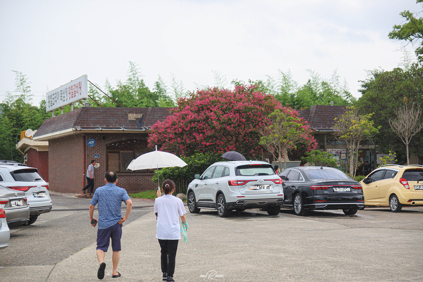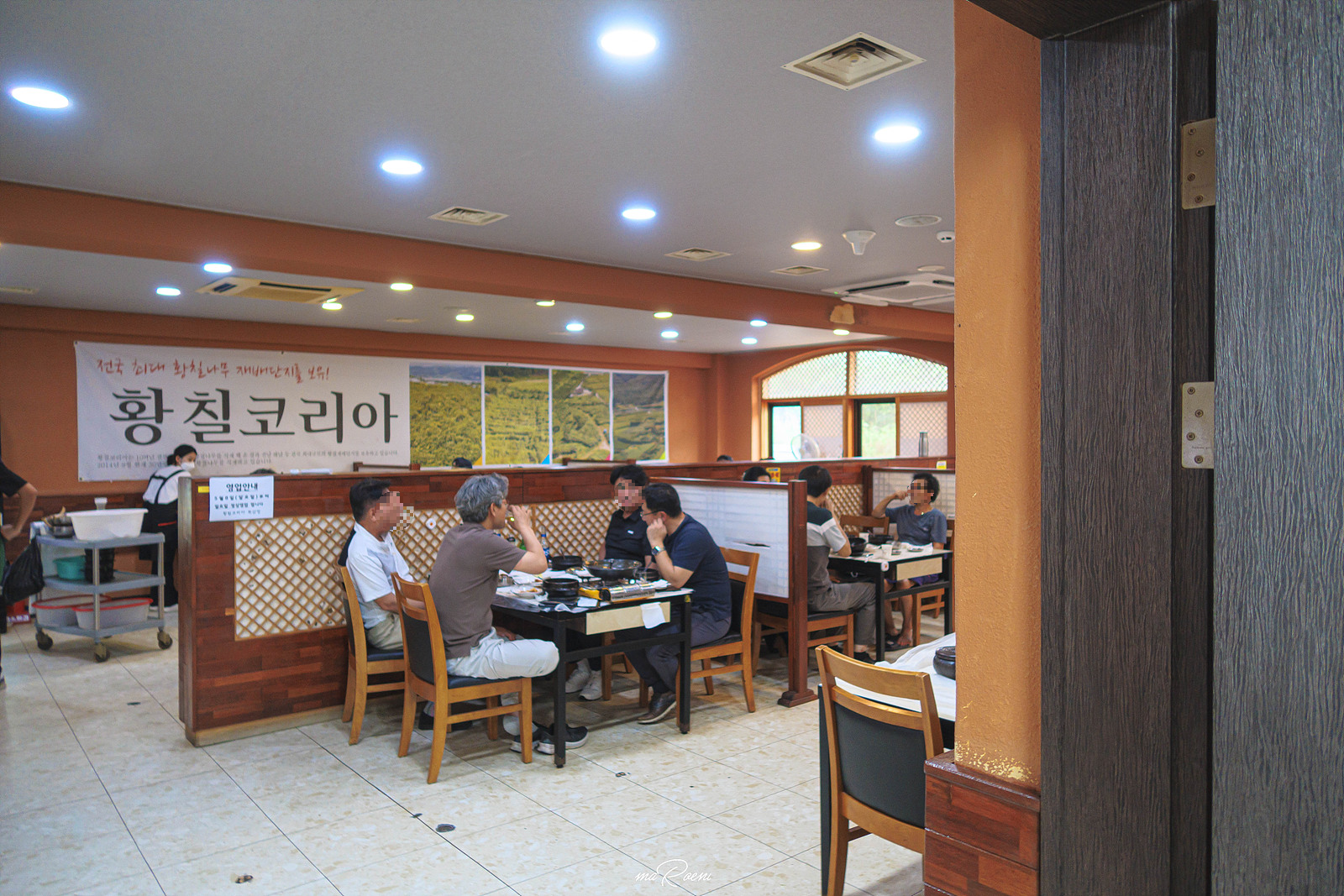 차량 안에서 황칠코리아 목삼정 강진점 간판을 발견했을 땐.. 솔직히 너무 큰 실망을 했었다. 아무리 강진이 시골이라고는 하지만 정말 이런 곳에 사람이 오긴 하는 걸까 싶을 정도로 식당이 너무 외진 곳에 위치해있었기 때문이다. 하지만 정말 웃기게도 이러한 내 생각은 주차장을 통과하는 순간 180도 달라졌다. 황칠코리아 목삼정 주차장은 갈비탕을 맛보기 위해 먼 곳에서 찾아온 관광객의 차량으로 가득했기 때문이었다.