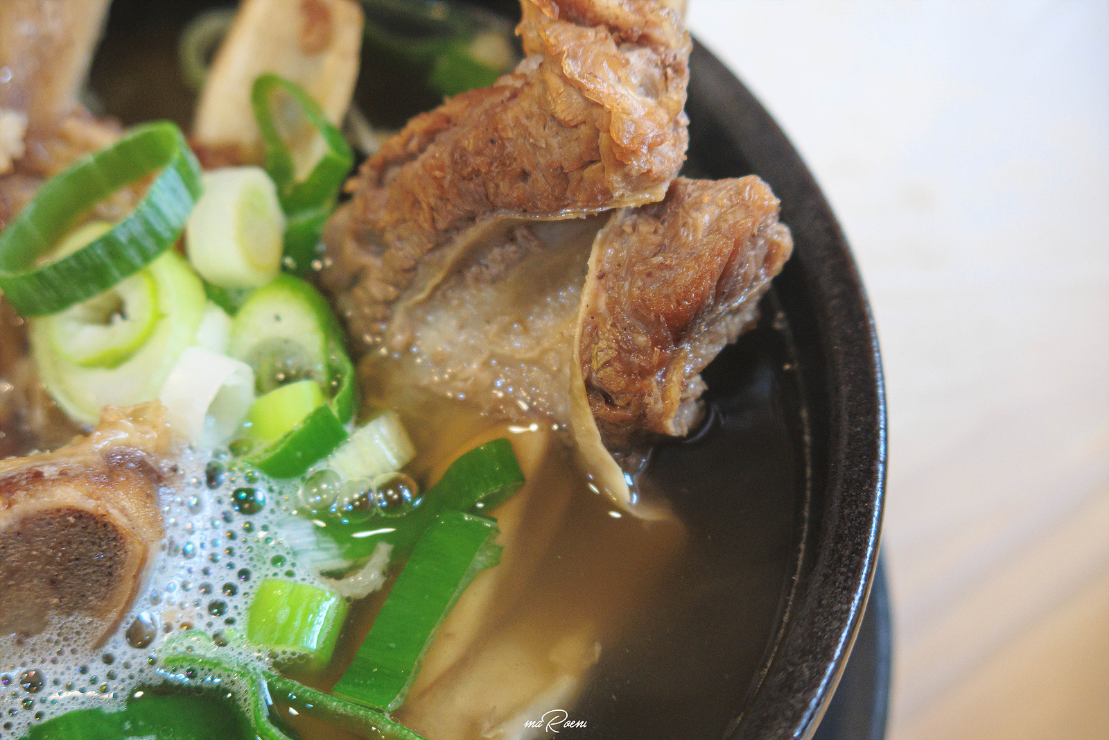드디어 기다리고 기다리던 황칠 왕갈비탕이 등장! 황칠나무에서 추출한 황칠진액을 육수로 사용해서 그런가 일단 냄새 자체는 김밥천국같은 곳에서 먹는 갈비탕과는 차원이 다르더라. 국물도 보기에는 엄청 맹물같이 맑아 보이는데 맛 자체는 엄청 공격적이라는거; 정말 진하고 구수했다.