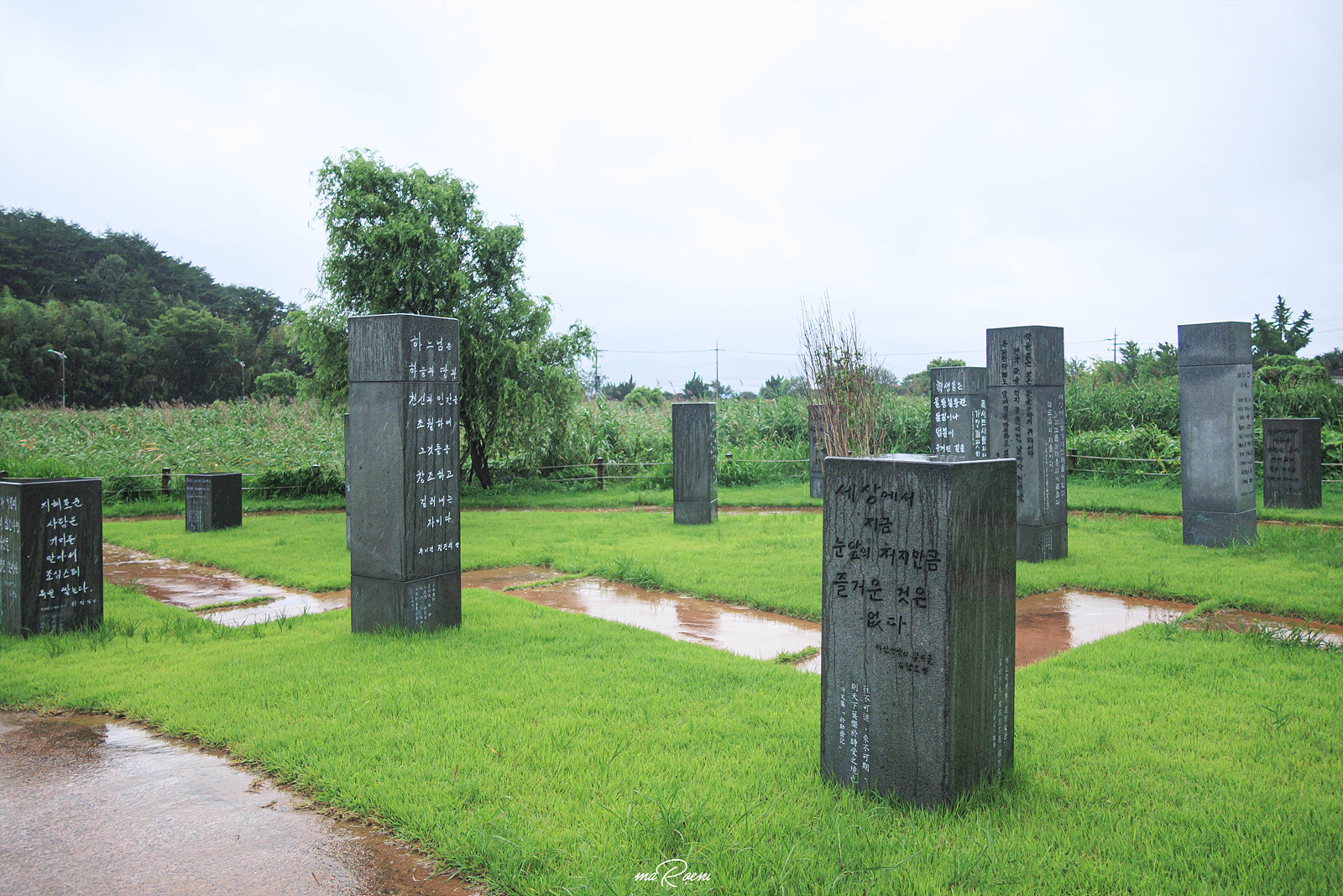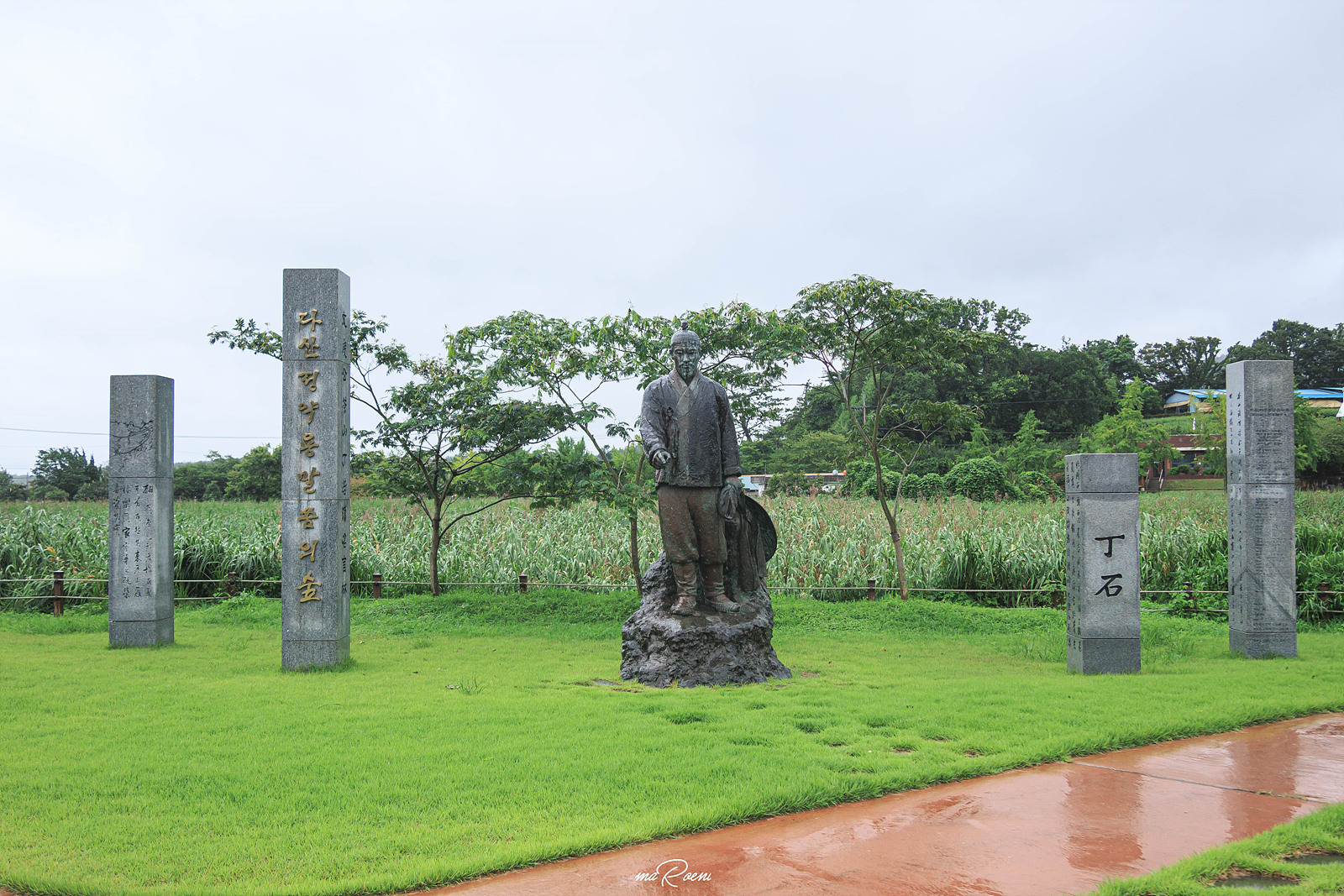 다산박물관 정문 앞, 말씀의숲에는 4.5m 높이의 다산 동상과 함께 여러 말씀이 적혀있는 명언비들을 볼 수 있다. 명언비에는 정약용을 비롯하여 초등학생부터 90세 할머니, 전직대통령, 학계, 문화예술계 등 총 86명이 작성한 다산의 명언들이 새겨졌다고 한다. 하나하나 읽어보고 싶었지만 비가 오는 바람에 사진만 찍고 후다닥 박물관 안으로 입장했다.