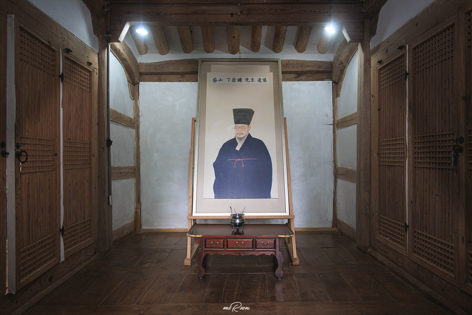 실내에는 다산 정약용의 초상화와 그를 기리는 향이, 실외 산쪽으로는 다산이 직접 새긴 정석이 보였다.(저 표지판이 다산이 새긴게 아니라, 주변 바위에 새겨져 있음!)