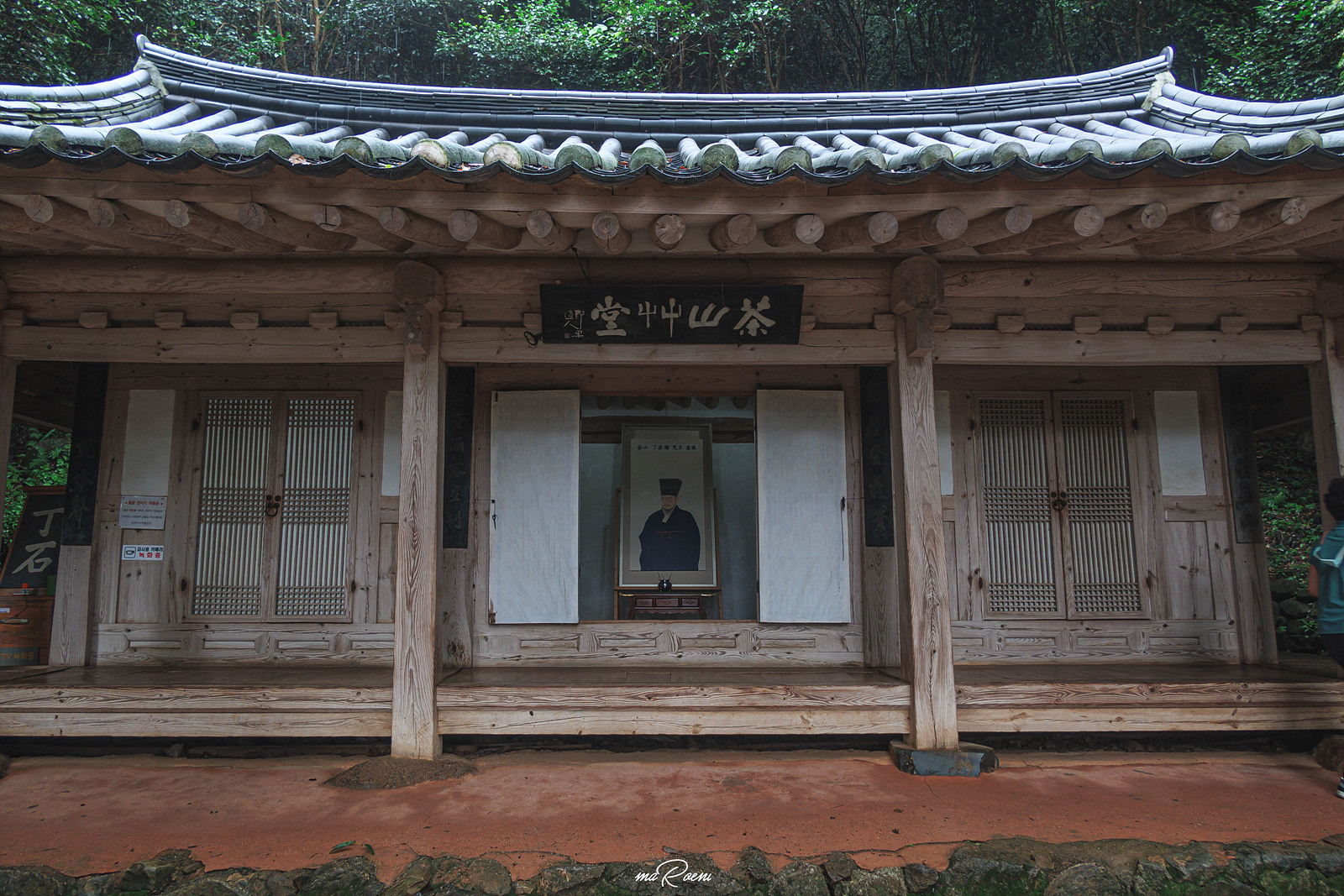 다산초당 앞에 보이는 건물은 서암이라고 한다. 이 건물이 다산이 길러낸 18명의 제자들이 기거하던 장소로 차와 벗하며 늦은 시간까지 학문을 탐구한다는 뜻으로 건물 이름을 다성각이라 지었다고.. 이밖에 천일각과 동암이 있었지만 비가 거세게 내리는 바람에 더 이상 사진은 찍을 수 없었다. 건물들이 다 비슷비슷해 보여서 요정도만 봐도 충분할듯!