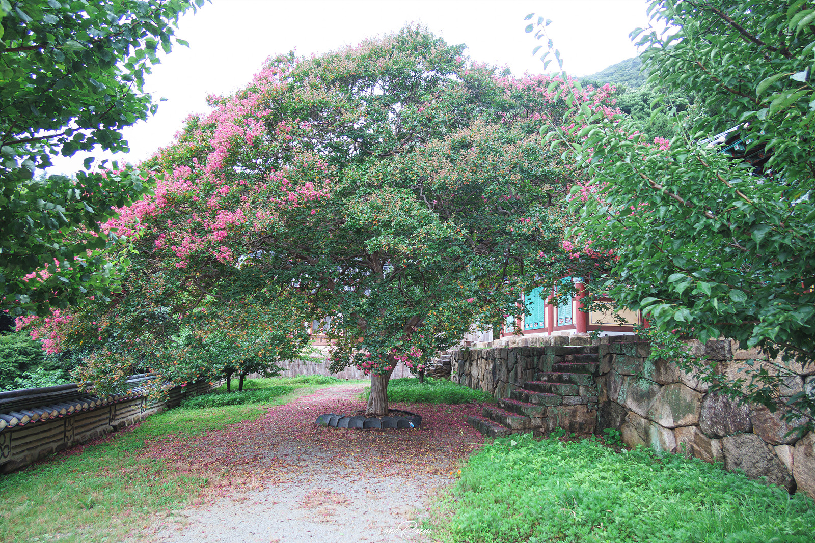 만덕산을 타고 올라 백련사에 도착하면 핑크핑크한 배롱나무(백일홍나무)를 만나게 된다. 도심에서는 감질나게 피어있던 배롱나무가 백련사에서는 그 수를 헤아릴 수 없을 정도로 화려하게 피어있었다.