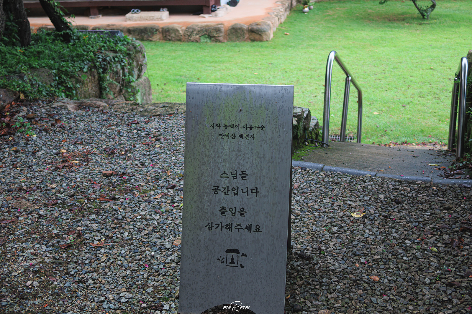 다산초당에서 산길따라 30~40분 정도 이동하면 백련사를 찾을 수 있지만 우리는 급격하게 밀려오는 피로감 때문에 차량을 이용해서 백련사로 이동했다. 백련사는 앞에서 말했던 것처럼 겨울에는 동백꽃길로 유명하며 여름에는 배롱나무가 흐드러지게 피어있는 곳으로 유명하기에 사진을 찍는 진사들이 많이 찾는 강진 가볼만한곳 중 하나이기도 하다.