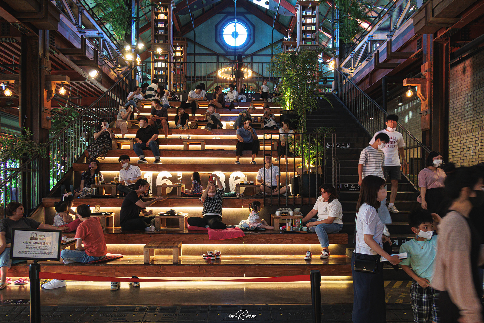음료를 주문하고 뒤로 돌아서면 2층으로 올라가는 계단이 보이고, 계단 옆으로도 계단식 테이블이 배치되어 있었다. 진짜 누구 머리에서 나온 인테리어인지는 모르겠으나 상당히 과감하면서도 감각적인.. 고작 음료를 주문하고 뒤로 돌아섰을 뿐인데 초등학생때 딱 한번 해봤던, 모두의 앞에서 얼굴이 뻘겋게 달아올랐던 웅변이 떠올랐을 정도로 모두가 나를 바라보는 그런 느낌이 들었다. 물론 아니겠지만 말이다.