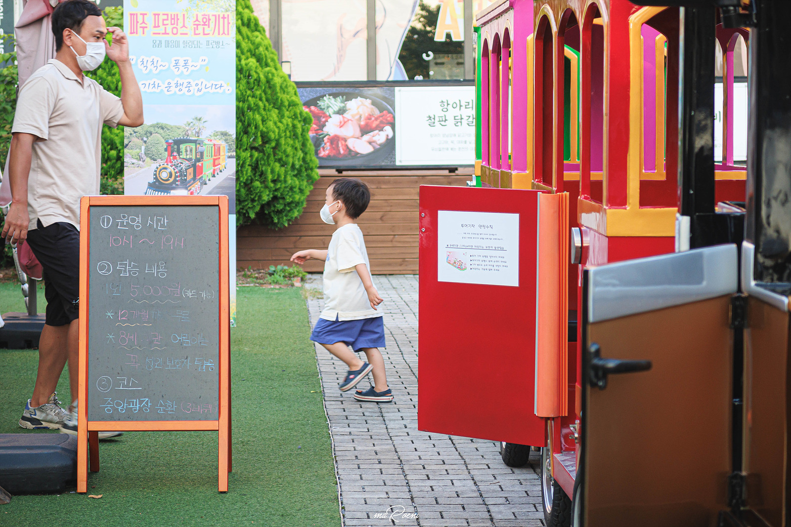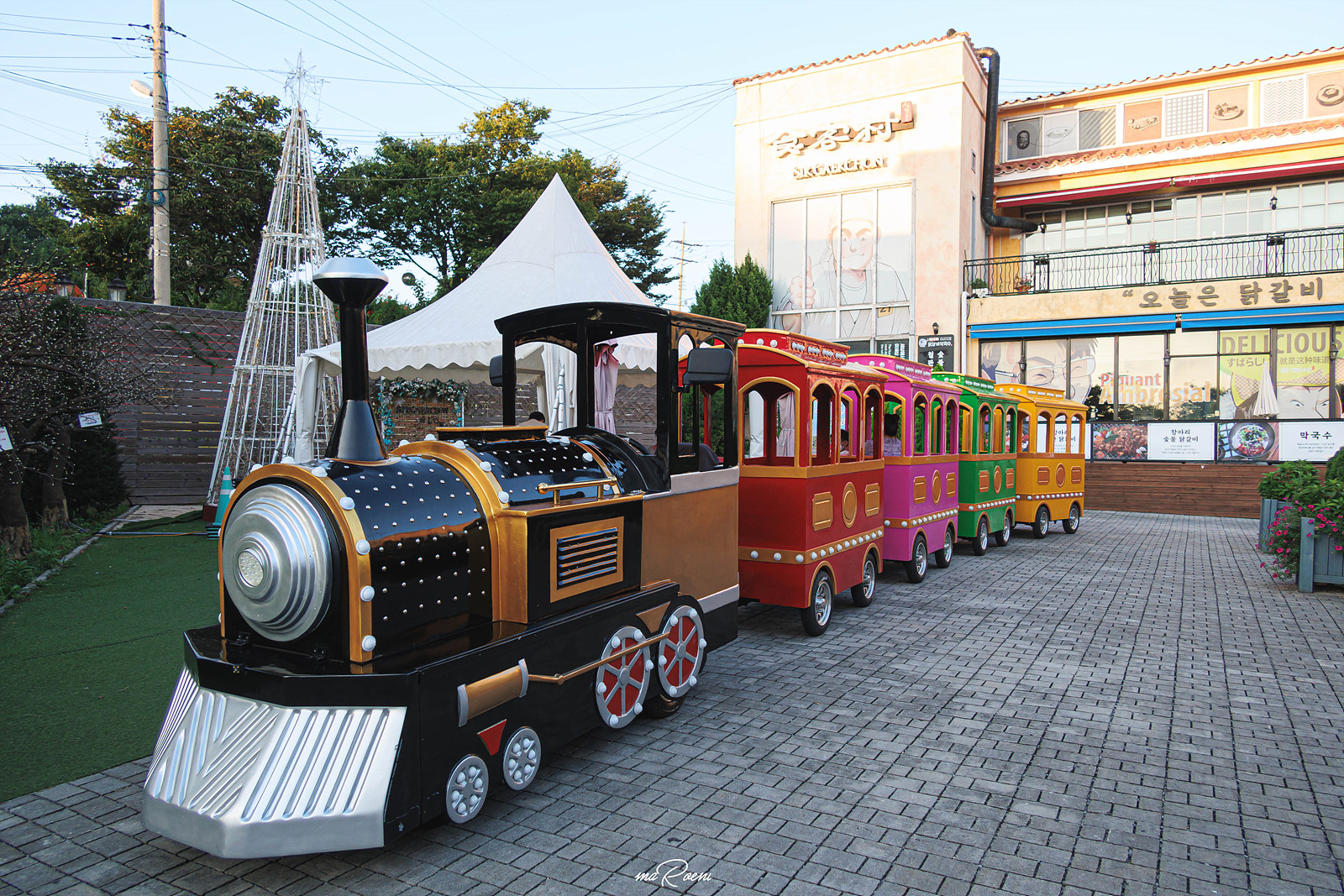 파주 프로방스마을 순환기차인 투어기차는 마을 안에 있는 작은 공원을 빙빙 돌 뿐인데(3바퀴 정도 도는듯?) 1인당 \5,000원이라는 비용이 발생한다. 레일이 깔려서 프로방스마을 전체를 도는 것도 아니고, 입구만 빙빙 도는데 유료라니.. 납득하기 힘든 가격이었다. 그래서였을까? 이용하는 사람이 거의 없더라. 어지간하면 애들이 타자고 노래를 부를 텐데 말이다..