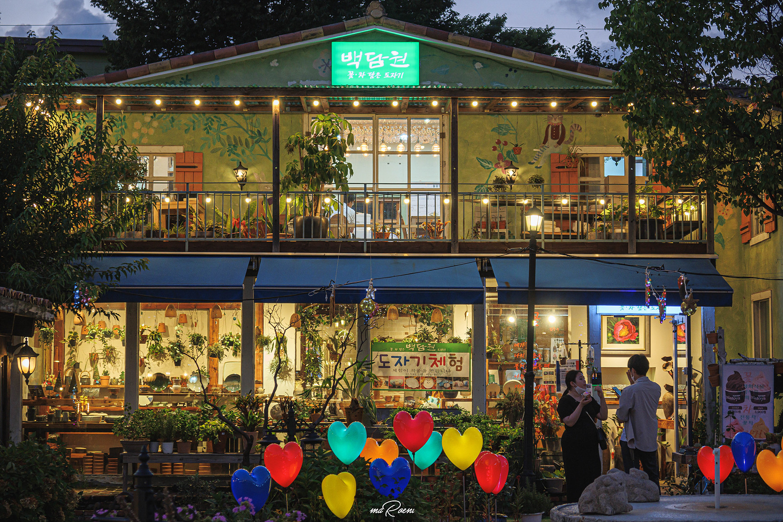 전체적인 상점 투어가 끝나니 해가 떨어지고 파주 프로방스마을의 꽃.. 야경을 위한 조명이 하나둘씩 점등되기 시작되었다. 조명이 켜지니 낮과는 또 다른 느낌이 들었고 여기가 국내인지 프랑스인지 약 2초 정도..? 헷갈리긴 했지만 곧바로 정신을 차려 헬조선이라는 것을 빠르게 인지하였다.