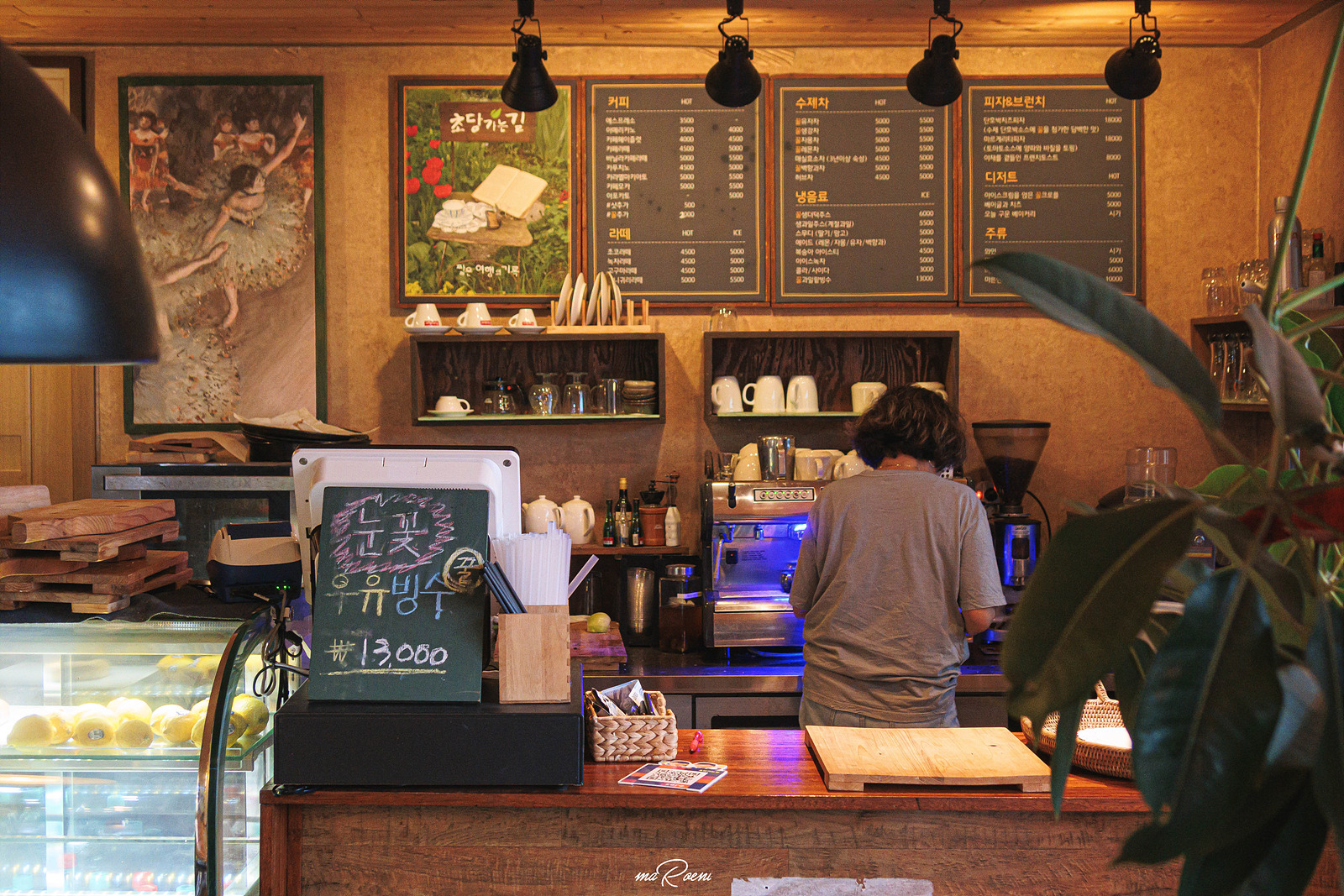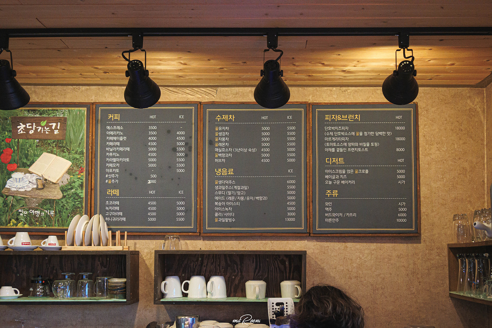 실내로 들어서니 이쪽 동네(?)와는 어울리지 않는 감각적인 인테리어가 가장 먼저 눈에 들어왔다. 전체적으로 빈티지하면서도 엔틱한 느낌의 소품들이 많았는데 이런 분위기라면 여기서 살아도 좋겠다는 생각이 들 정도로 정말 딱 내 취향이었다. 동네 특성상 메뉴도 끽해야 아메리카노나 라떼류가 전부였겠거니 싶었는데.. 의외로 다양한 메뉴를 취급하는 것을 보고, 이때의 나는 살짝 충격을 받았던 것 같다.