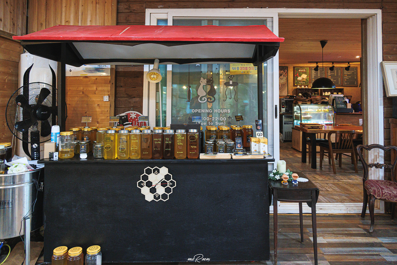 카운터 옆에는 사장님께서 꿀을 연구하시는.. 일종의 연구소 같은 공간도 있더라. 여길 봐도 꿀, 저길 봐도 꿀.. 이곳은 꿀 천국이다. 확실히 우리가 주문한 음료에 설탕 대신 꿀이 들어가서 그런가, 뭔가 깊은 단맛이 느껴지는 것 같으면서도 칼로리 폭탄을 마시는 느낌이 아닌 건강음료를 마시는 기분이 들었다. 꿀이 잔뜩 들어간 디저트류를 맛보지 못했던건 지금도 후회스러움...