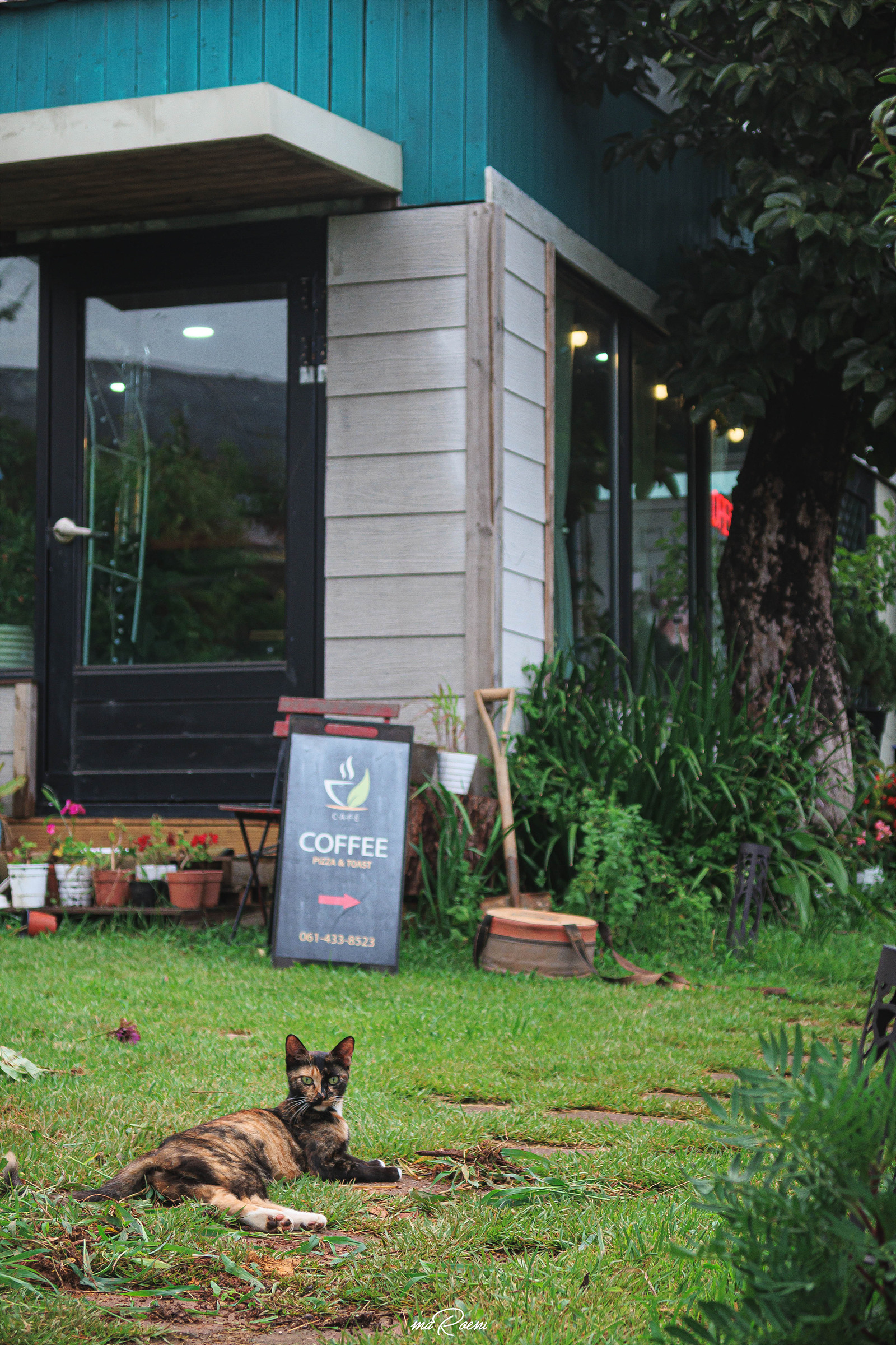 야외에는 입구에서 본 녀석들과는 다른 고양이들이 보였다. 모두 하나같이 주인장의 애정 어린 손길을 받으며 자라온 녀석들이라 그런지 온순하면서 애교가 많았다. 그중에서 사진 속의 고양이가 나를 참 잘 따라댕기던데, 몰래 훔쳐오고 싶을 정도로 귀여운 녀석이었다.