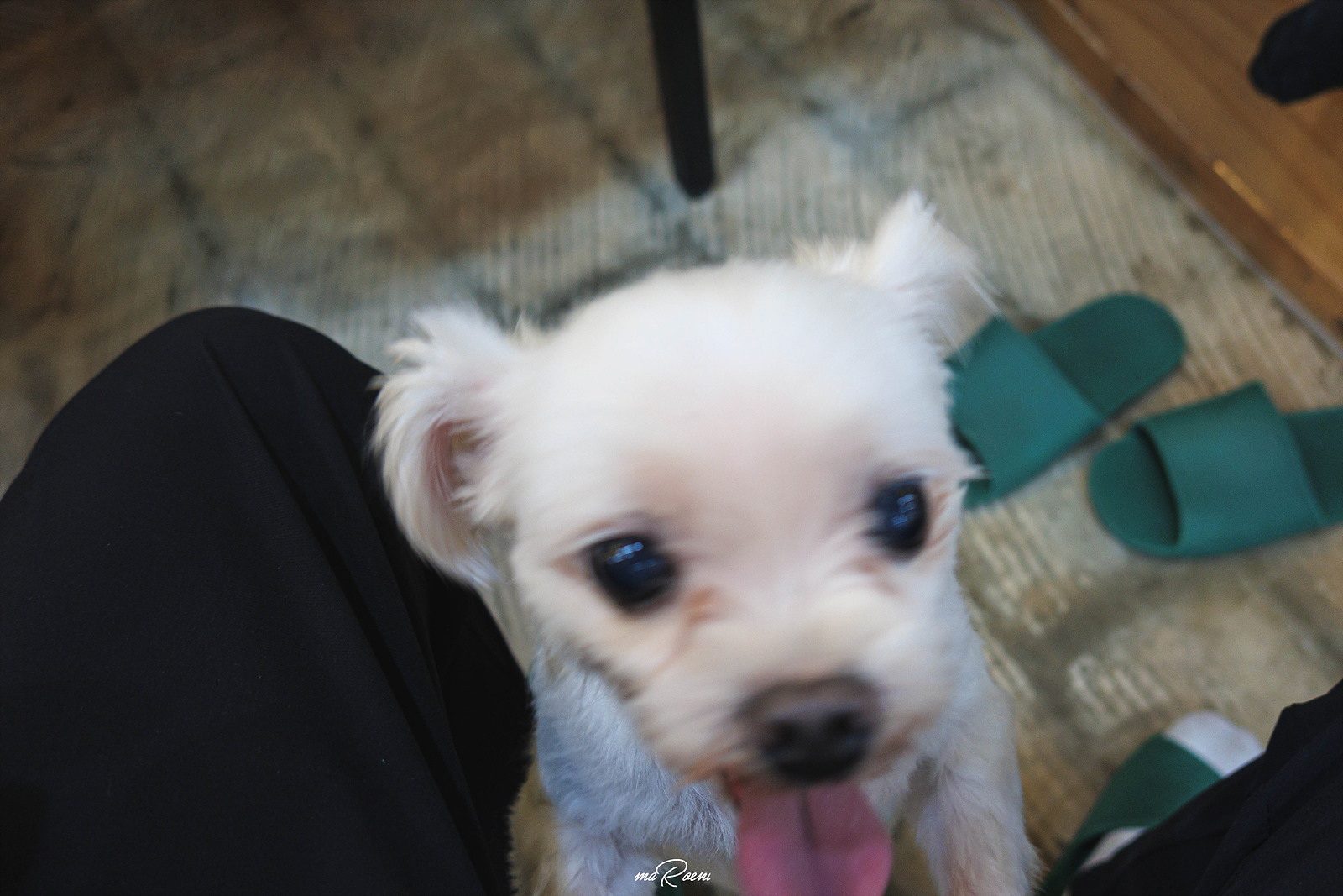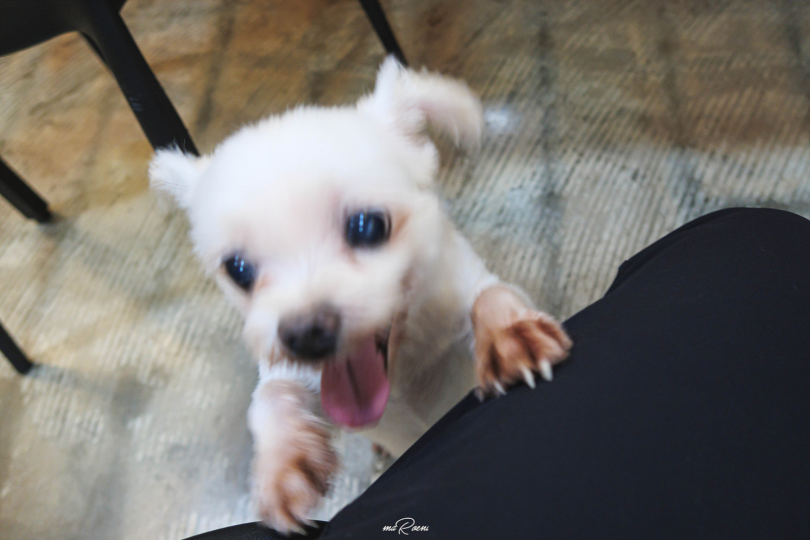 내 무릎 위에 올라타기 위해 안간힘을 쓰던 녀석ㅋㅋ 근데 어림도 없지! 바지를 얇은 걸로 입었는데 강쥐 발톱이 너무 날카로워서 무릎에 올리기가 곤란했음.