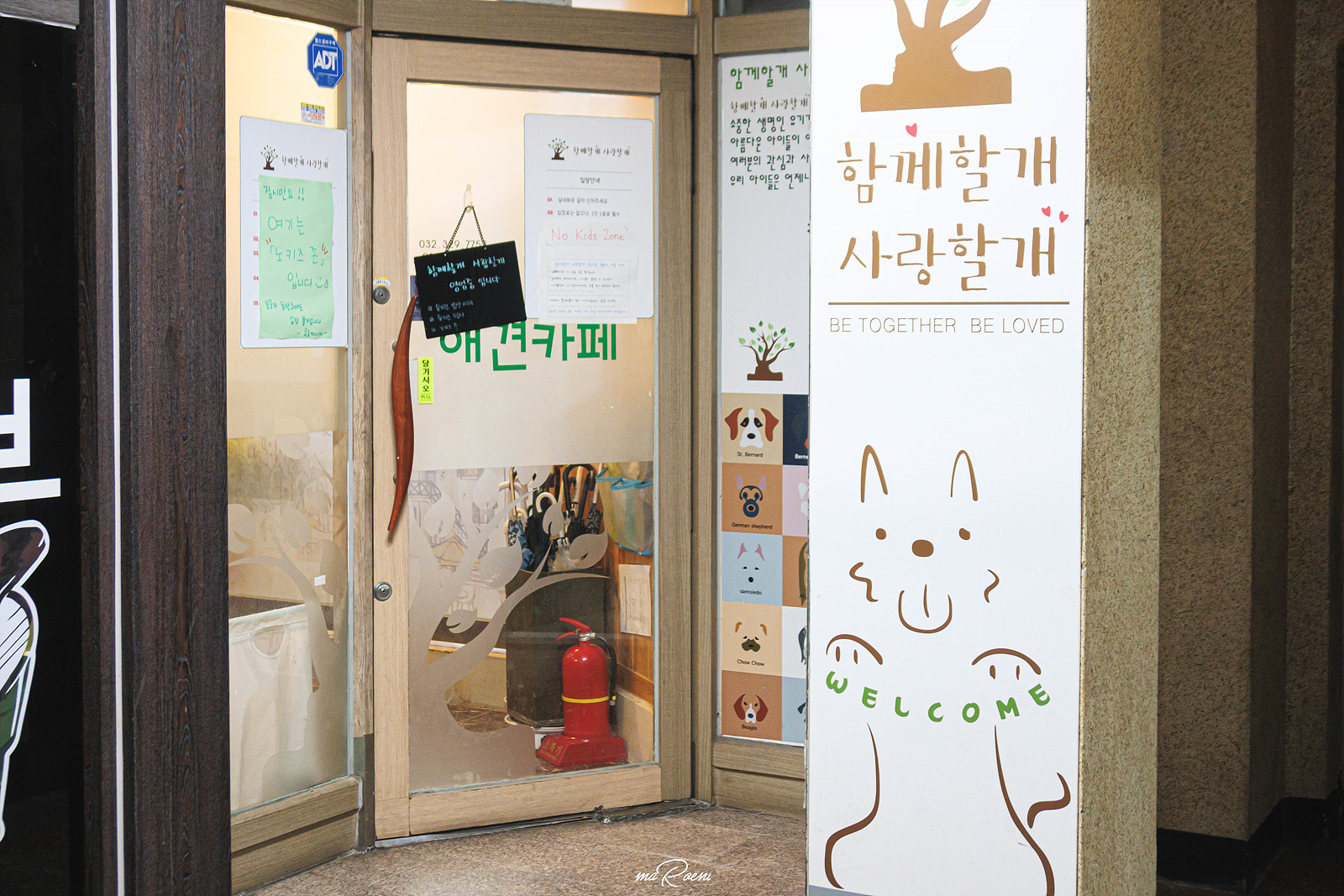 지도를 따라 2층으로 올라가니 애견카페치고 생각보다 너무 조용하다고 느껴져서 그냥 퇴각할까 싶었지만, 우리의 발소리를 들었는지 내부에서 강아지 수십마리가 짖어대는 소리가 들렸었다. 하는 수 없이 짖어대는 녀석들의 얼굴이나 보자는 생각으로 들어갔는데, 알고 보니 이곳은 일반적인 애견카페가 아닌 유기견을 입양할 수 있는 유기견 입양 카페이면서 강아지들을 맡아주는 애견호텔의 기능도 하고 있더라! 찾아보니 부천의 자립형 유기견입양카페라고..