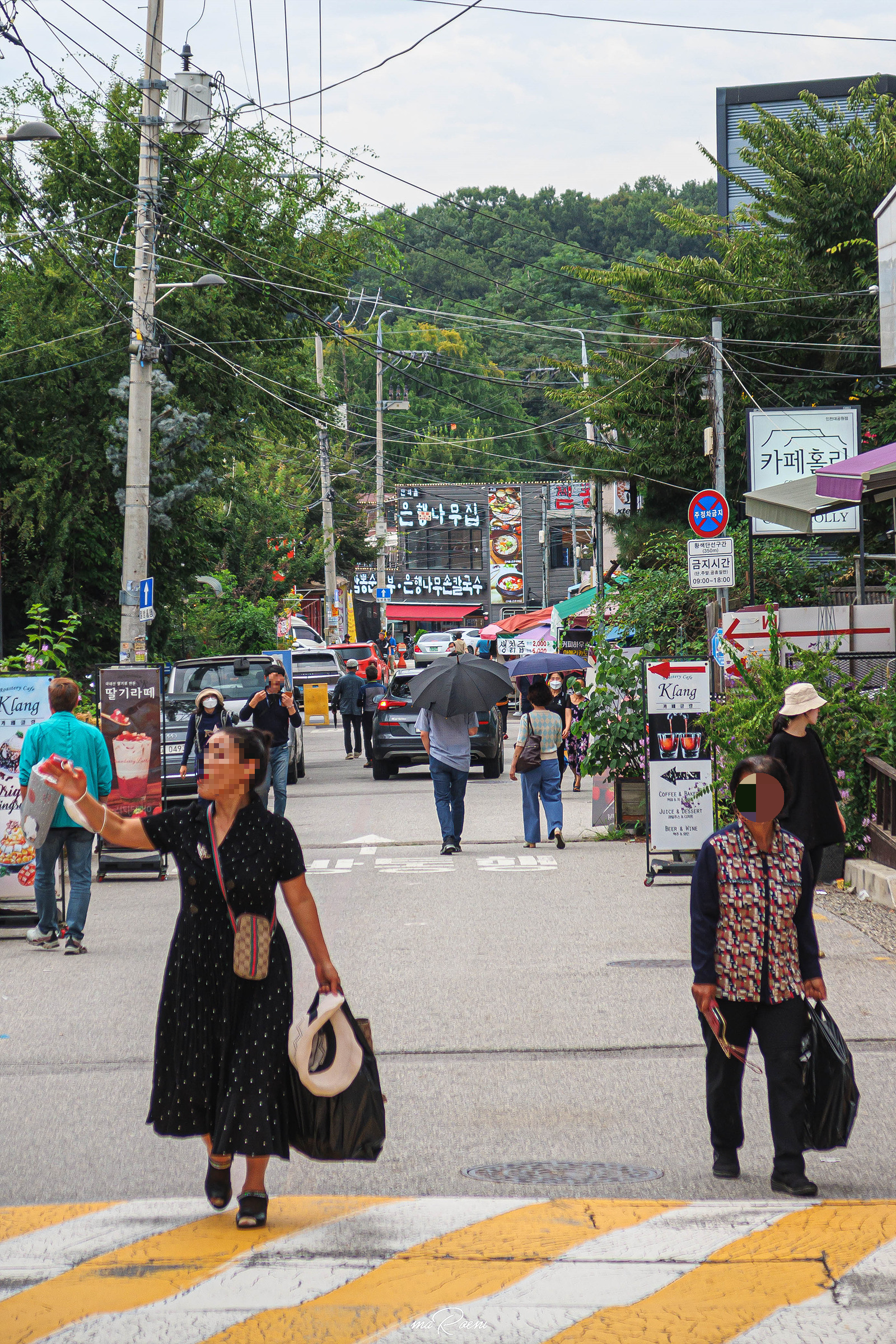 마른하늘에 날벼락이라고, 분명 기상정보를 확인하고 왔는데 비가 주룩주룩 내리기 시작했다. 하지만 장수동 은행나무앞에서는 비 걱정은 하지 않아도 좋다. 무려 800년 이상된 은행나무의 촘촘한 잎사귀들이 비를 모두 막아주기 때문.