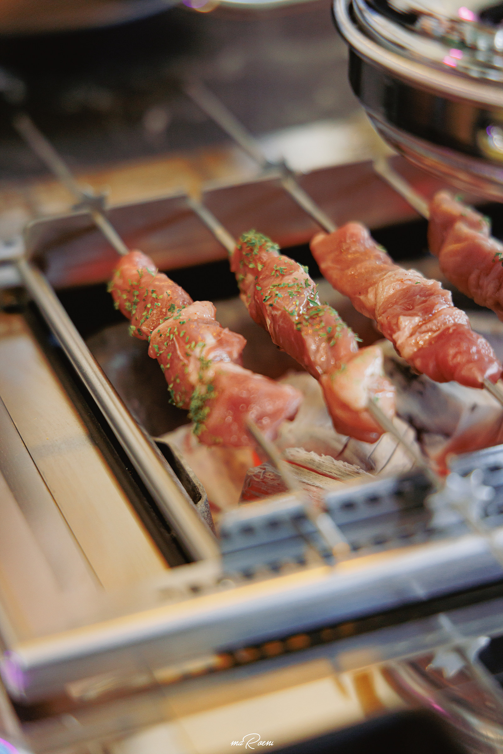 주문한 양꼬치 목살이 나왔다. 1인 \14,000원이라는게 조금 빡새긴 했지만 불판에 올려보니 막상 양은 그리 작지 않게 느껴졌다. 너무 배가 고파서 일단 불판 위에 올리고 능숙한 손놀림으로 꼬치를 컨트롤했다.