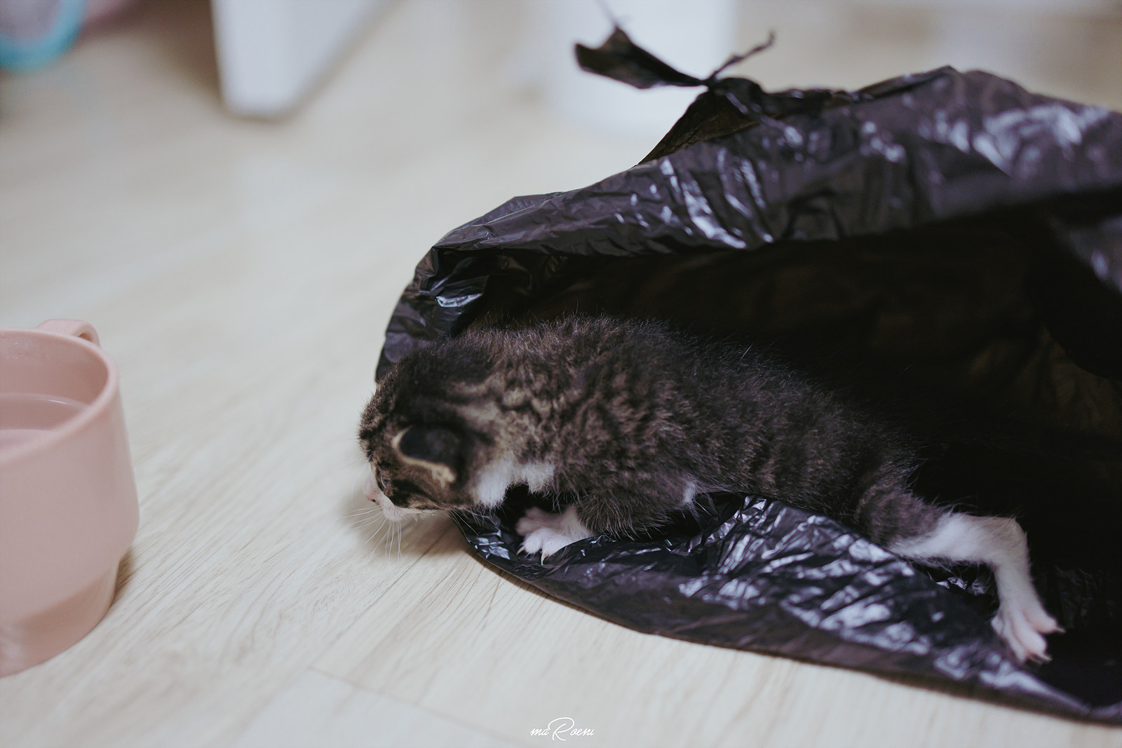 9월 30일 결국 어미는 돌아오지 않았다. 새끼고양이도 힘이 다 떨어진 모양인지 울음소리에서는 첫날 보았던 괭괭스러운 울음소리가 나지 않았고 다 죽어가는 소리가 들렸다. 날씨도 쌀쌀해졌고.. 이대로는 안되겠다 싶어서 박스에 이불과 천을 넣어준 후 따뜻한 물을 병에 담아서 박스에 넣어줬다. 따뜻한 물병을 보고 마음에 들었는지, 녀석은 병을 끌어안고 잠에 들었다. 혹시 몰라서 모든 작업은 비닐작업을 끼고 진행했다.. 내 냄새가 날 수 있으니..