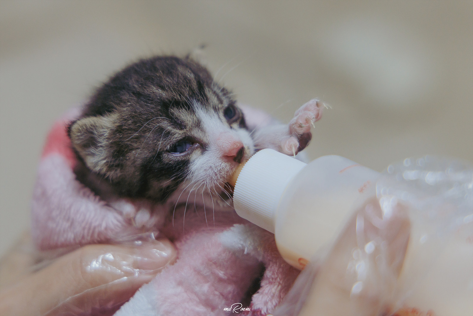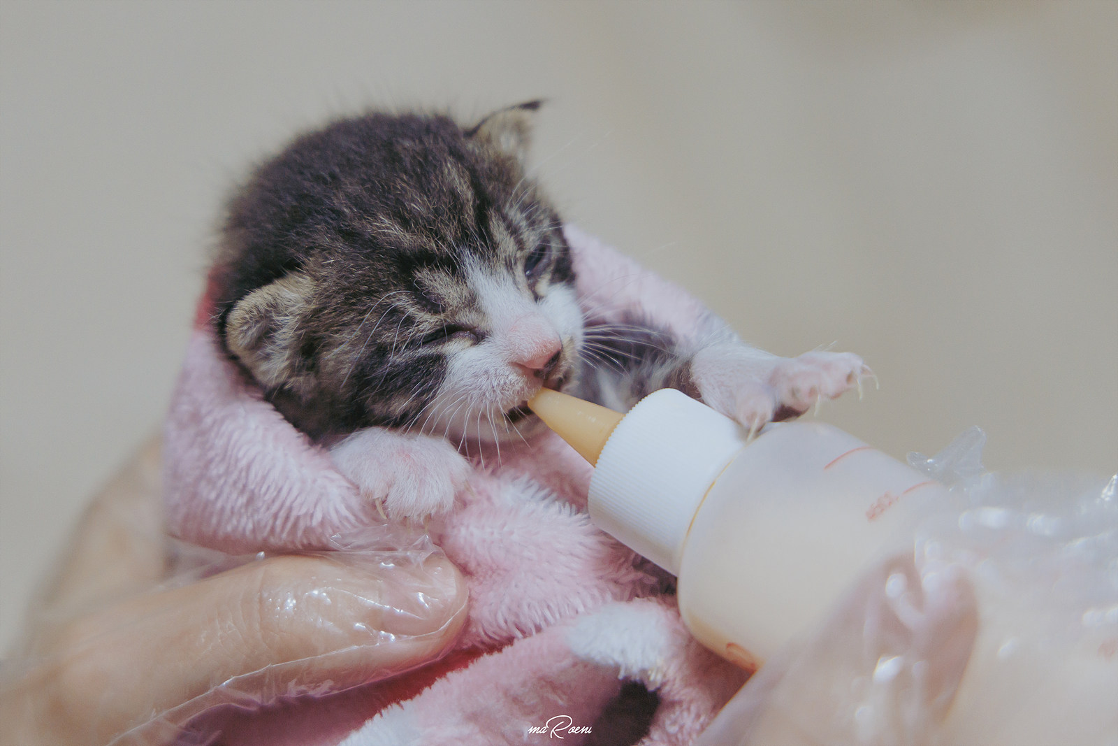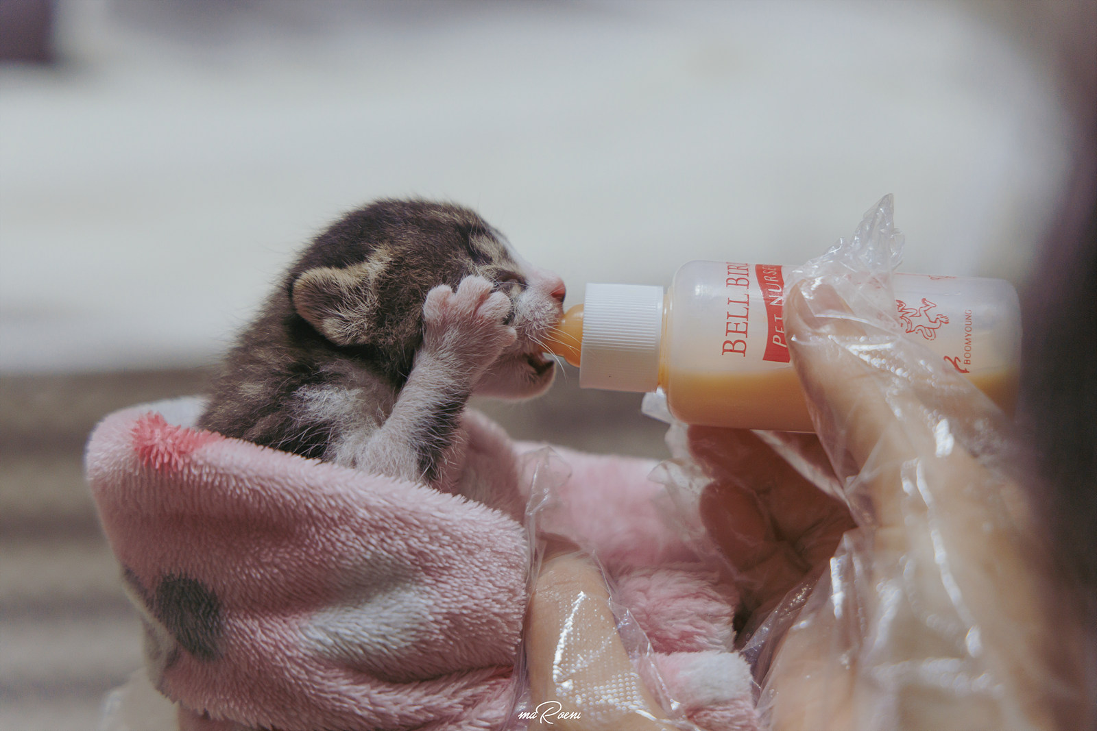고양이는 온도에 민감한데, 새끼 때는 스스로 체온조절을 못해서 더 예민하다고 하기에 몸을 최대한 따뜻하게 만들어준 후 펫밀크와 따뜻한 물을 섞어서 소독한 젖병에 담아 녀석에게 먹여봤다. 그랬더니 진짜 꼴깍꼴깍 우유를 삼키는 소리가 들리는게 아니겠는가..? 이 녀석 정말 배가 고팠구나!